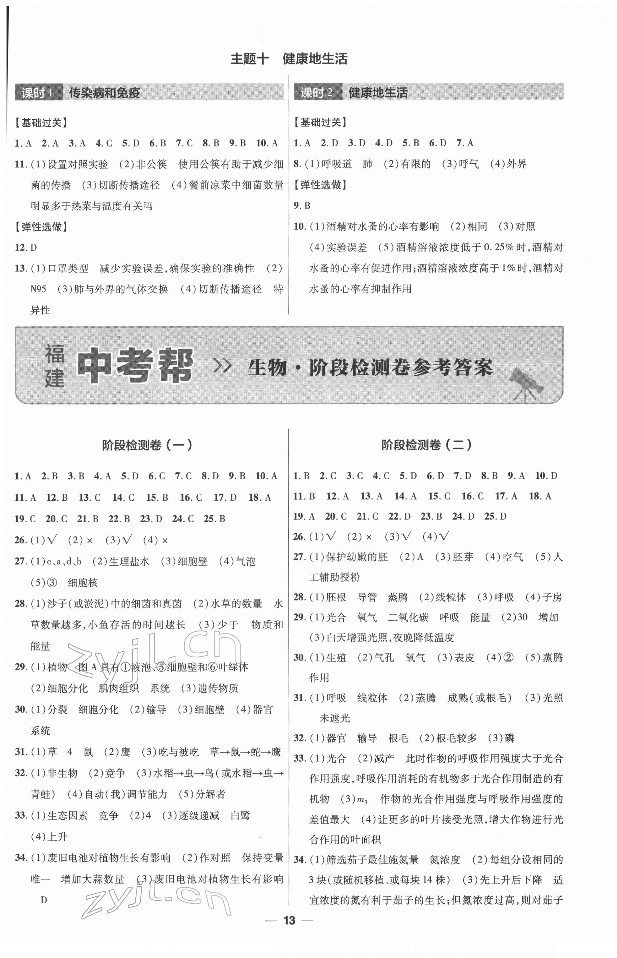 注:目前有些书本章节名称可能整理的还不是很完善,但都是按照顺序排列的,请同学们按照顺序仔细查找。练习册 2022年福建中考帮生物 答案主要是用来给同学们做完题方便对答案用的,请勿直接抄袭。