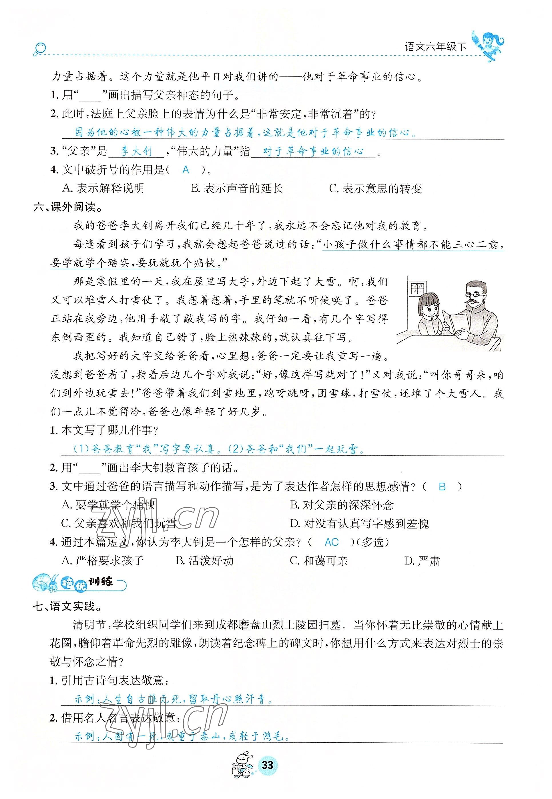 注:目前有些书本章节名称可能整理的还不是很完善,但都是按照顺序排列的,请同学们按照顺序仔细查找。练习册 2022年天府名校优课练六年级语文下册人教版 答案主要是用来给同学们做完题方便对答案用的,请勿直接抄袭。