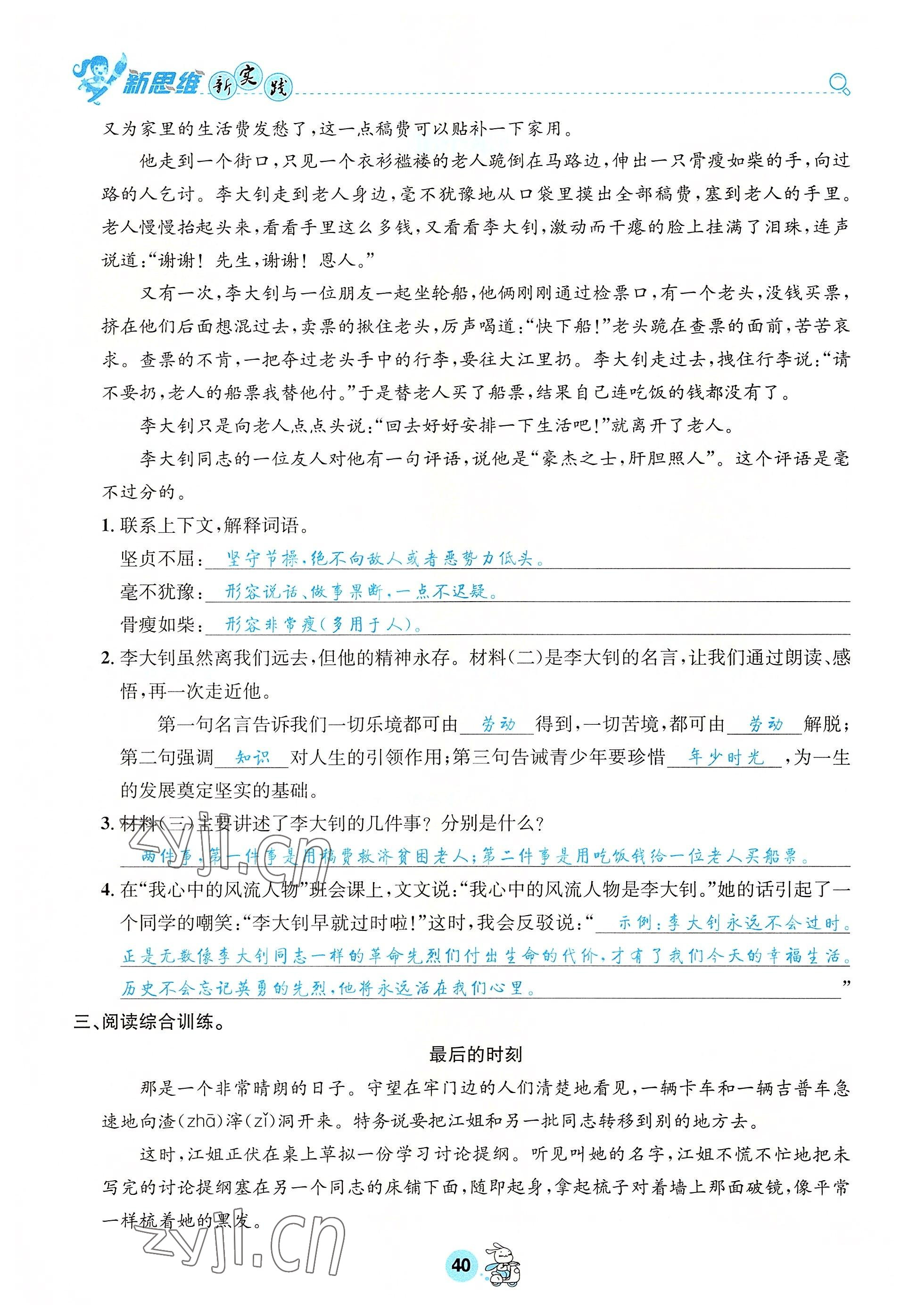 注:目前有些书本章节名称可能整理的还不是很完善,但都是按照顺序排列的,请同学们按照顺序仔细查找。练习册 2022年天府名校优课练六年级语文下册人教版 答案主要是用来给同学们做完题方便对答案用的,请勿直接抄袭。