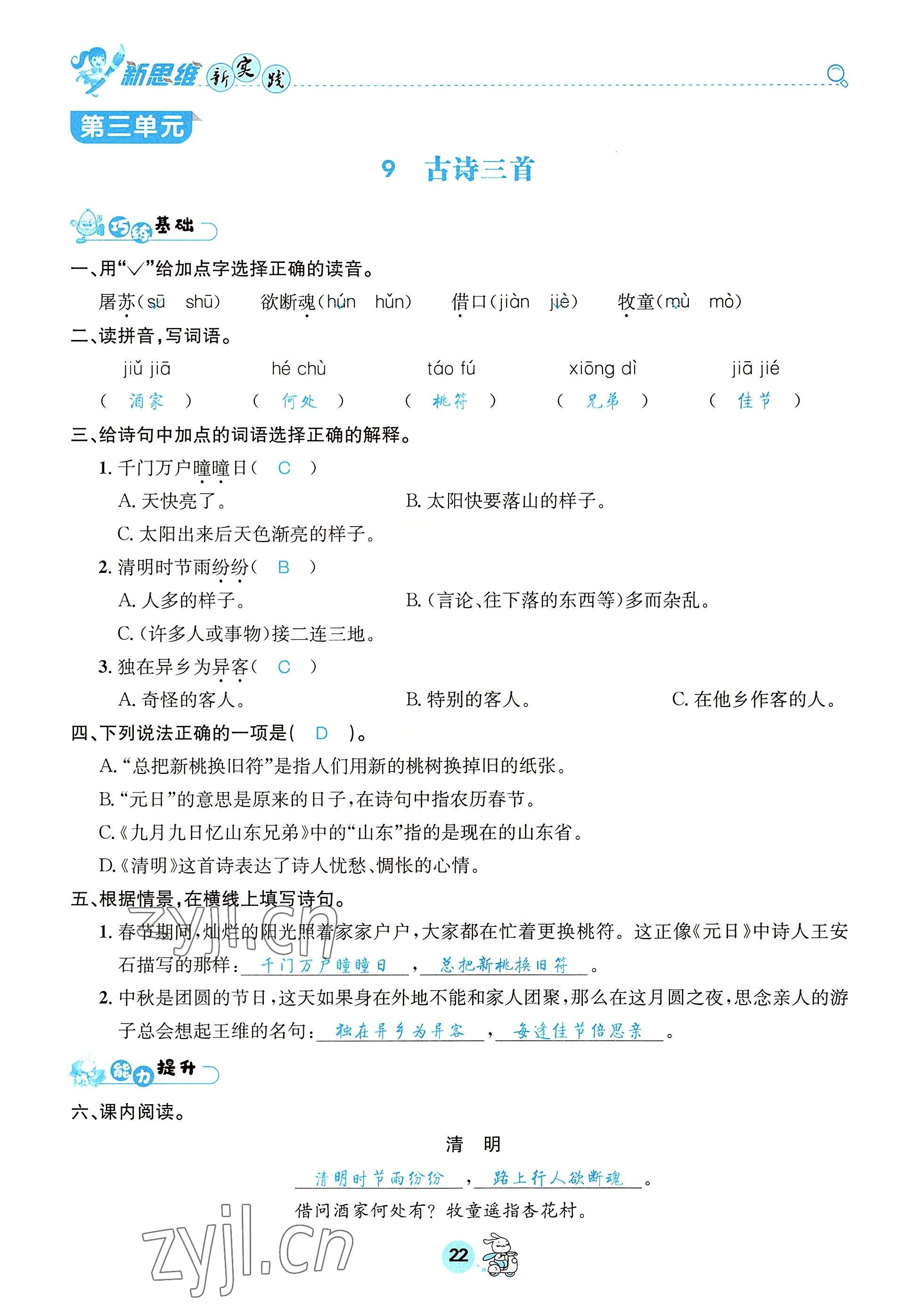 注:目前有些书本章节名称可能整理的还不是很完善,但都是按照顺序排列的,请同学们按照顺序仔细查找。练习册 2022年天府名校优课练三年级语文下册人教版 答案主要是用来给同学们做完题方便对答案用的,请勿直接抄袭。