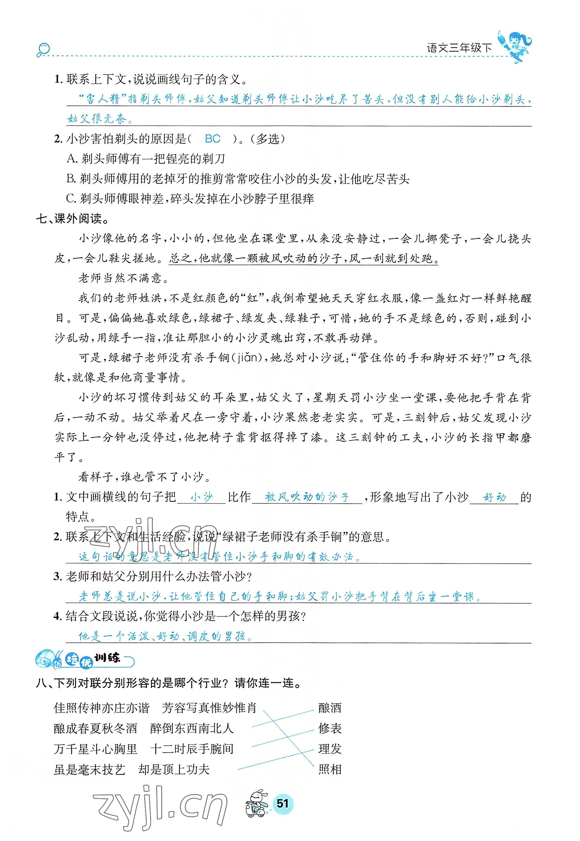 注:目前有些书本章节名称可能整理的还不是很完善,但都是按照顺序排列的,请同学们按照顺序仔细查找。练习册 2022年天府名校优课练三年级语文下册人教版 答案主要是用来给同学们做完题方便对答案用的,请勿直接抄袭。
