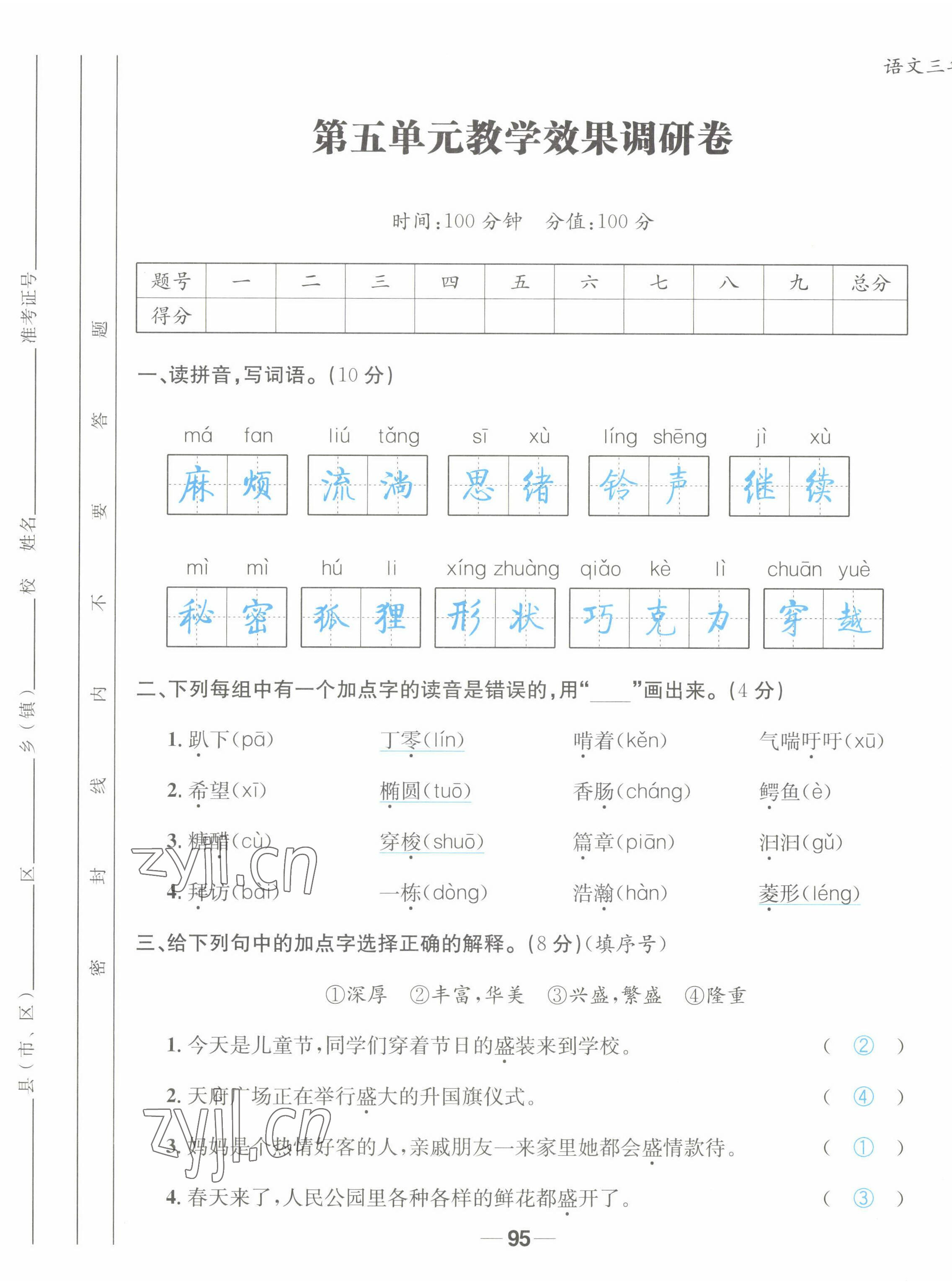 注:目前有些书本章节名称可能整理的还不是很完善,但都是按照顺序排列的,请同学们按照顺序仔细查找。练习册 2022年天府名校优课练三年级语文下册人教版 答案主要是用来给同学们做完题方便对答案用的,请勿直接抄袭。