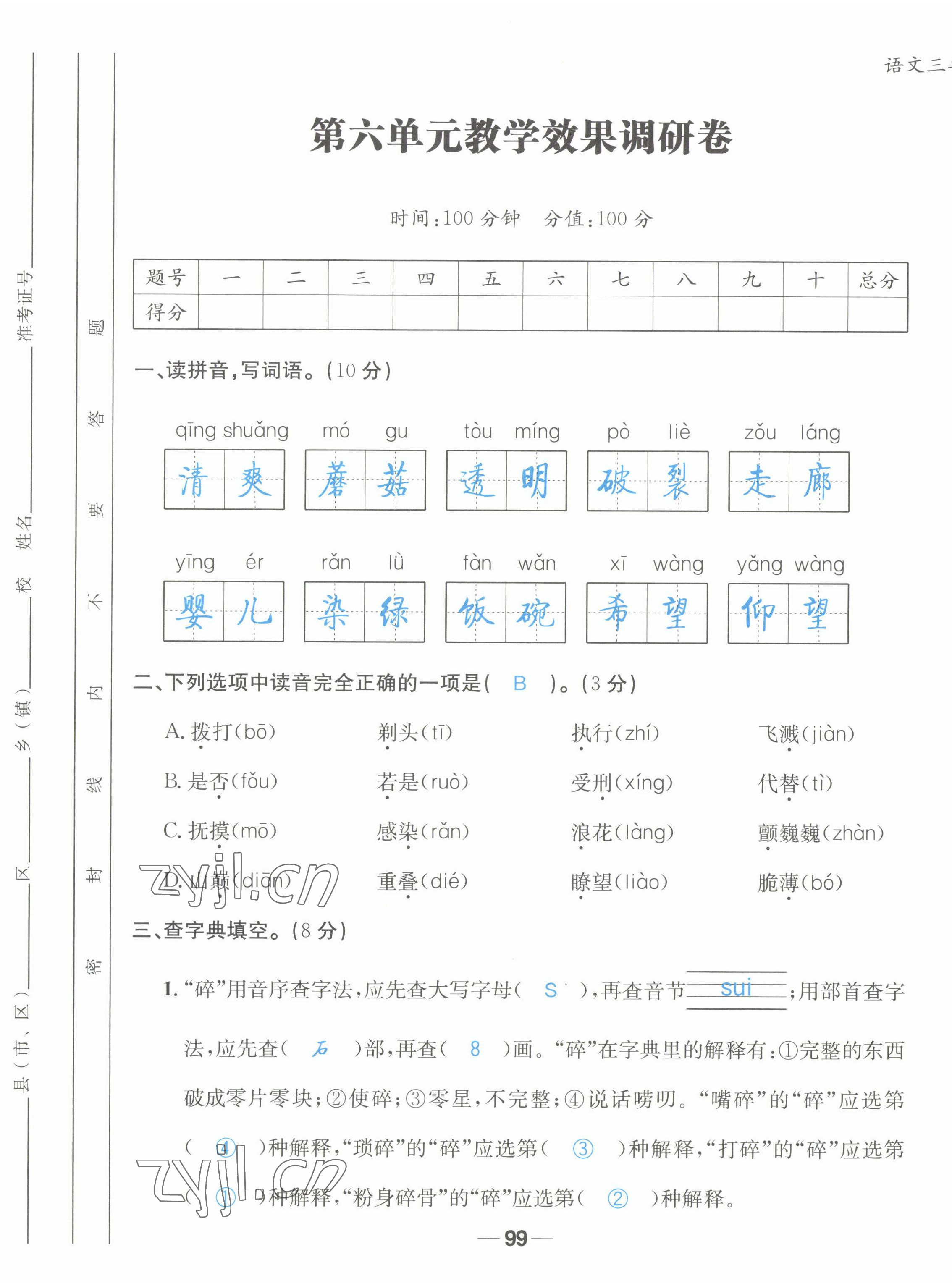 注:目前有些书本章节名称可能整理的还不是很完善,但都是按照顺序排列的,请同学们按照顺序仔细查找。练习册 2022年天府名校优课练三年级语文下册人教版 答案主要是用来给同学们做完题方便对答案用的,请勿直接抄袭。