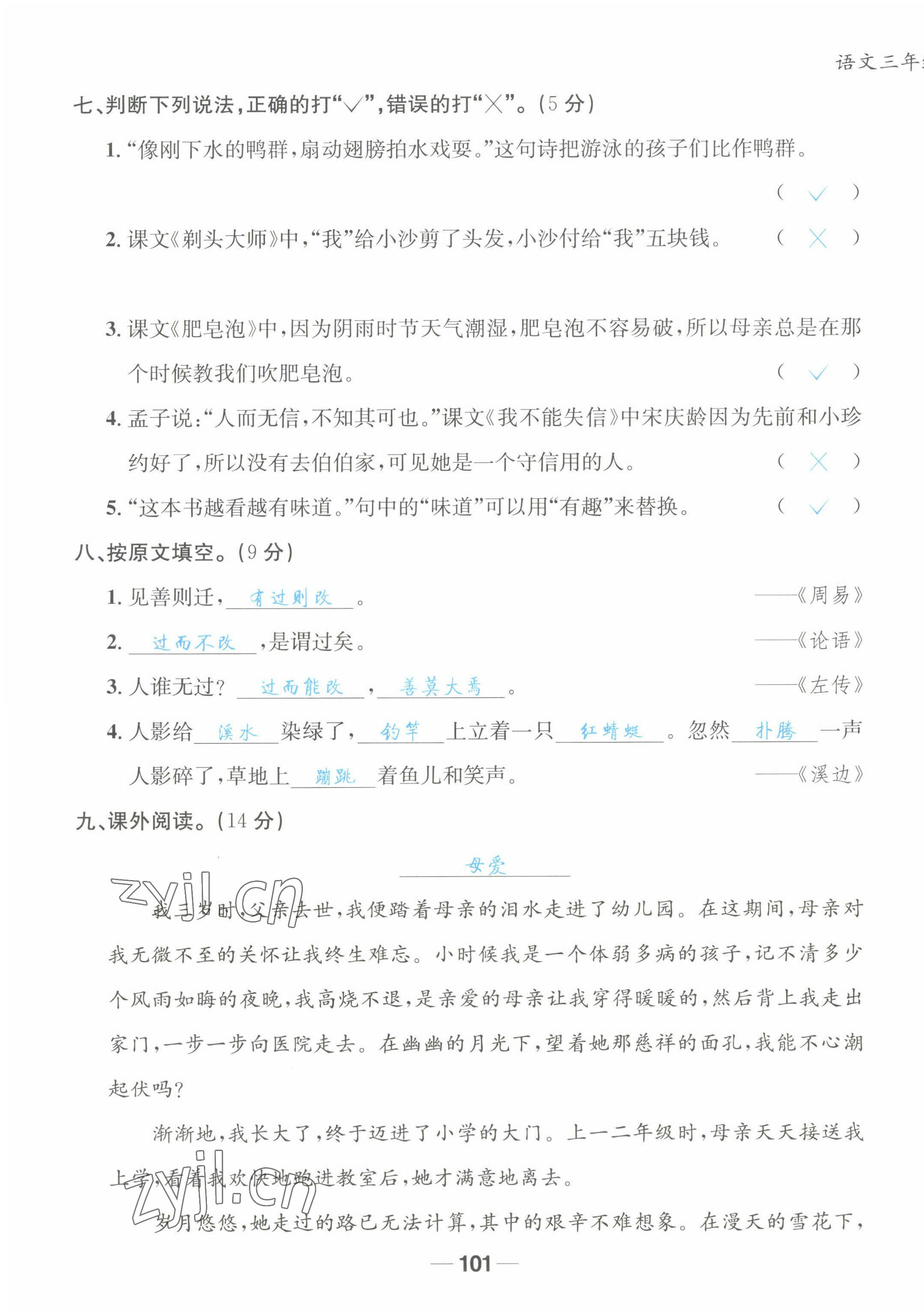 注:目前有些书本章节名称可能整理的还不是很完善,但都是按照顺序排列的,请同学们按照顺序仔细查找。练习册 2022年天府名校优课练三年级语文下册人教版 答案主要是用来给同学们做完题方便对答案用的,请勿直接抄袭。