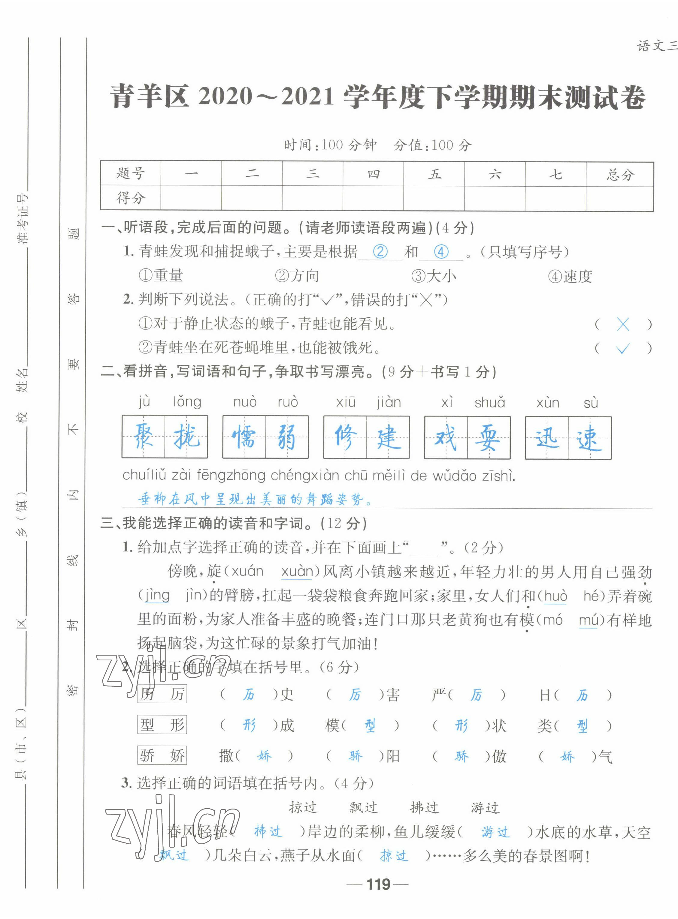 注:目前有些书本章节名称可能整理的还不是很完善,但都是按照顺序排列的,请同学们按照顺序仔细查找。练习册 2022年天府名校优课练三年级语文下册人教版 答案主要是用来给同学们做完题方便对答案用的,请勿直接抄袭。