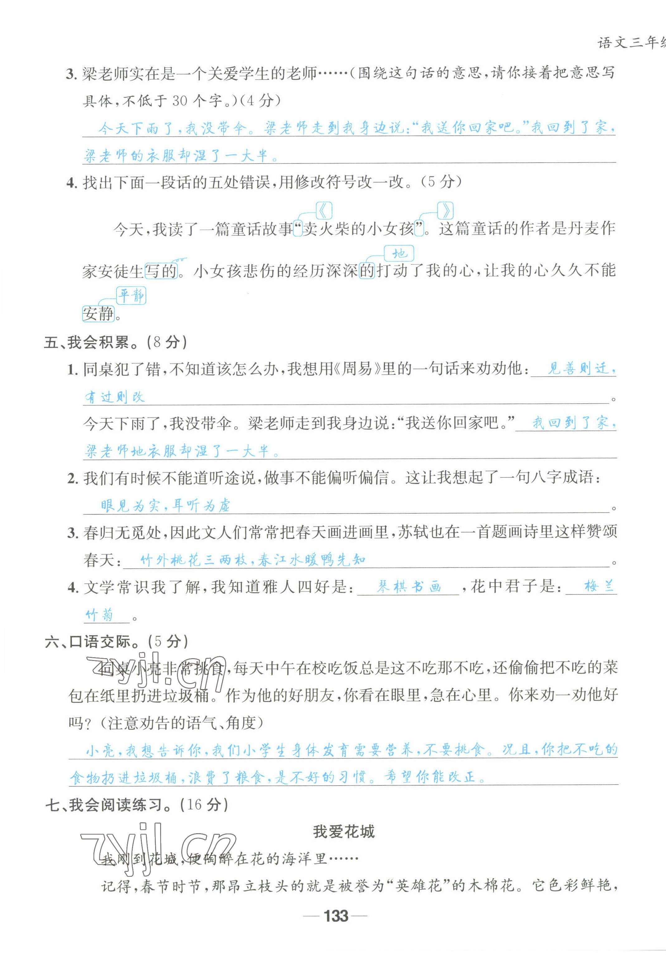 注:目前有些书本章节名称可能整理的还不是很完善,但都是按照顺序排列的,请同学们按照顺序仔细查找。练习册 2022年天府名校优课练三年级语文下册人教版 答案主要是用来给同学们做完题方便对答案用的,请勿直接抄袭。