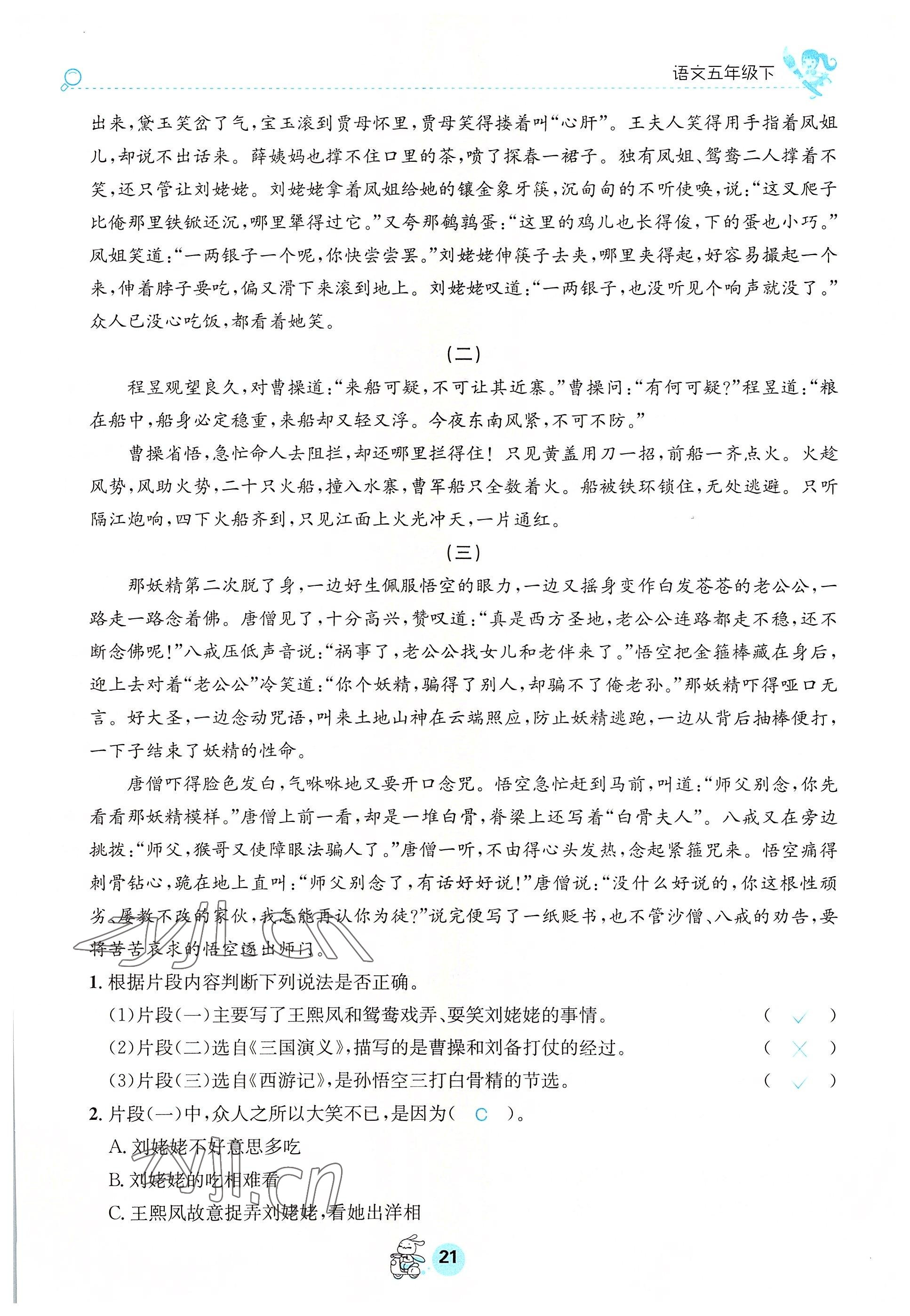 注:目前有些书本章节名称可能整理的还不是很完善,但都是按照顺序排列的,请同学们按照顺序仔细查找。练习册 2022年天府名校优课练五年级语文下册人教版 答案主要是用来给同学们做完题方便对答案用的,请勿直接抄袭。