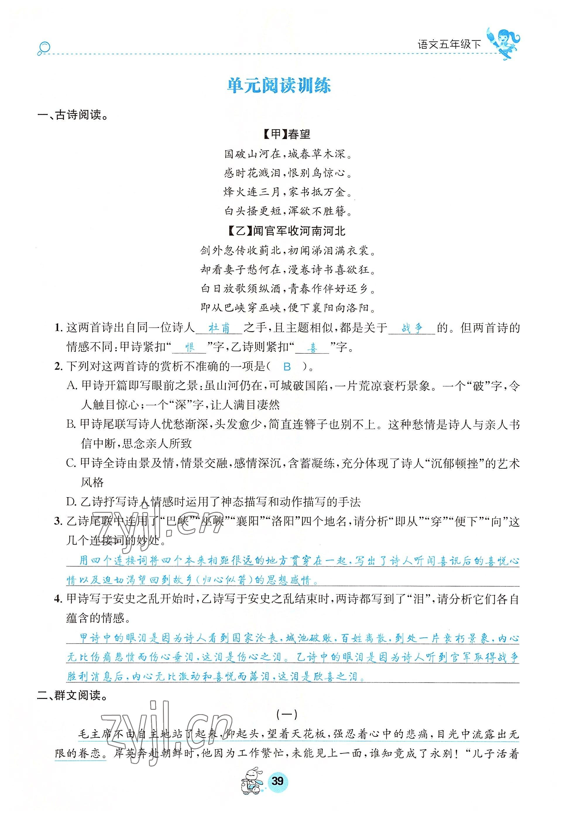注:目前有些书本章节名称可能整理的还不是很完善,但都是按照顺序排列的,请同学们按照顺序仔细查找。练习册 2022年天府名校优课练五年级语文下册人教版 答案主要是用来给同学们做完题方便对答案用的,请勿直接抄袭。