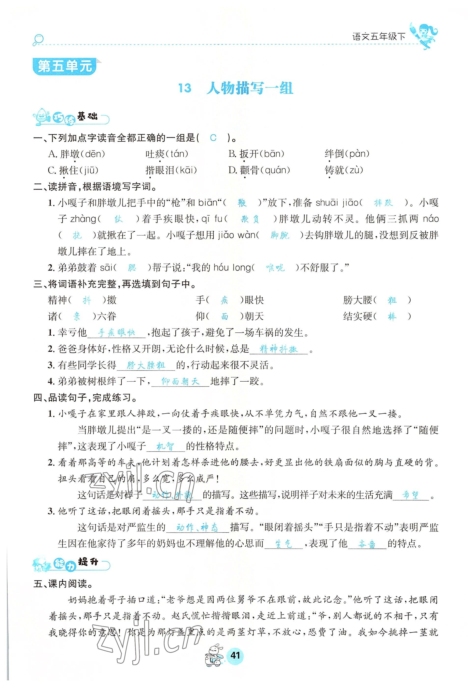 注:目前有些书本章节名称可能整理的还不是很完善,但都是按照顺序排列的,请同学们按照顺序仔细查找。练习册 2022年天府名校优课练五年级语文下册人教版 答案主要是用来给同学们做完题方便对答案用的,请勿直接抄袭。