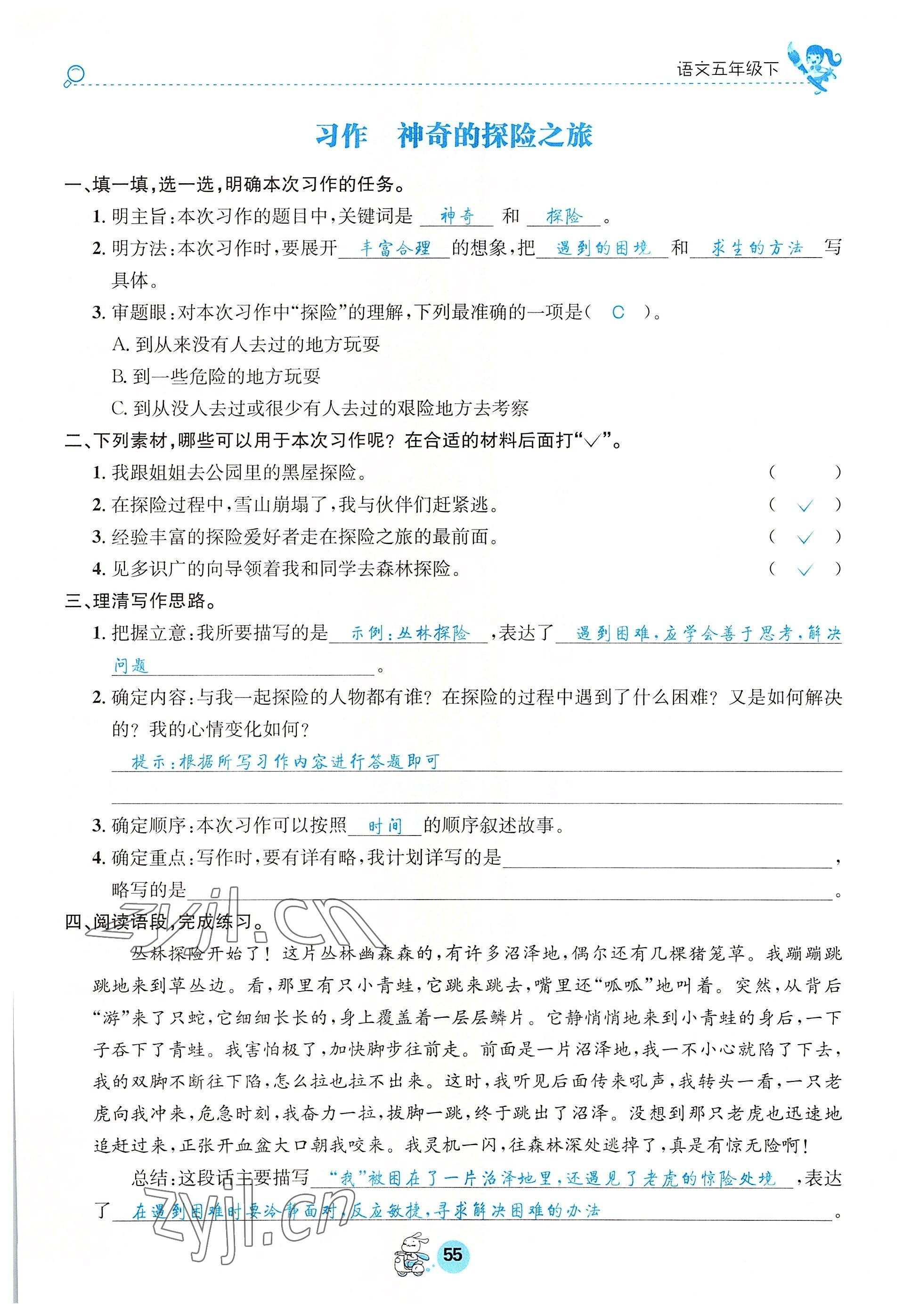 注:目前有些书本章节名称可能整理的还不是很完善,但都是按照顺序排列的,请同学们按照顺序仔细查找。练习册 2022年天府名校优课练五年级语文下册人教版 答案主要是用来给同学们做完题方便对答案用的,请勿直接抄袭。