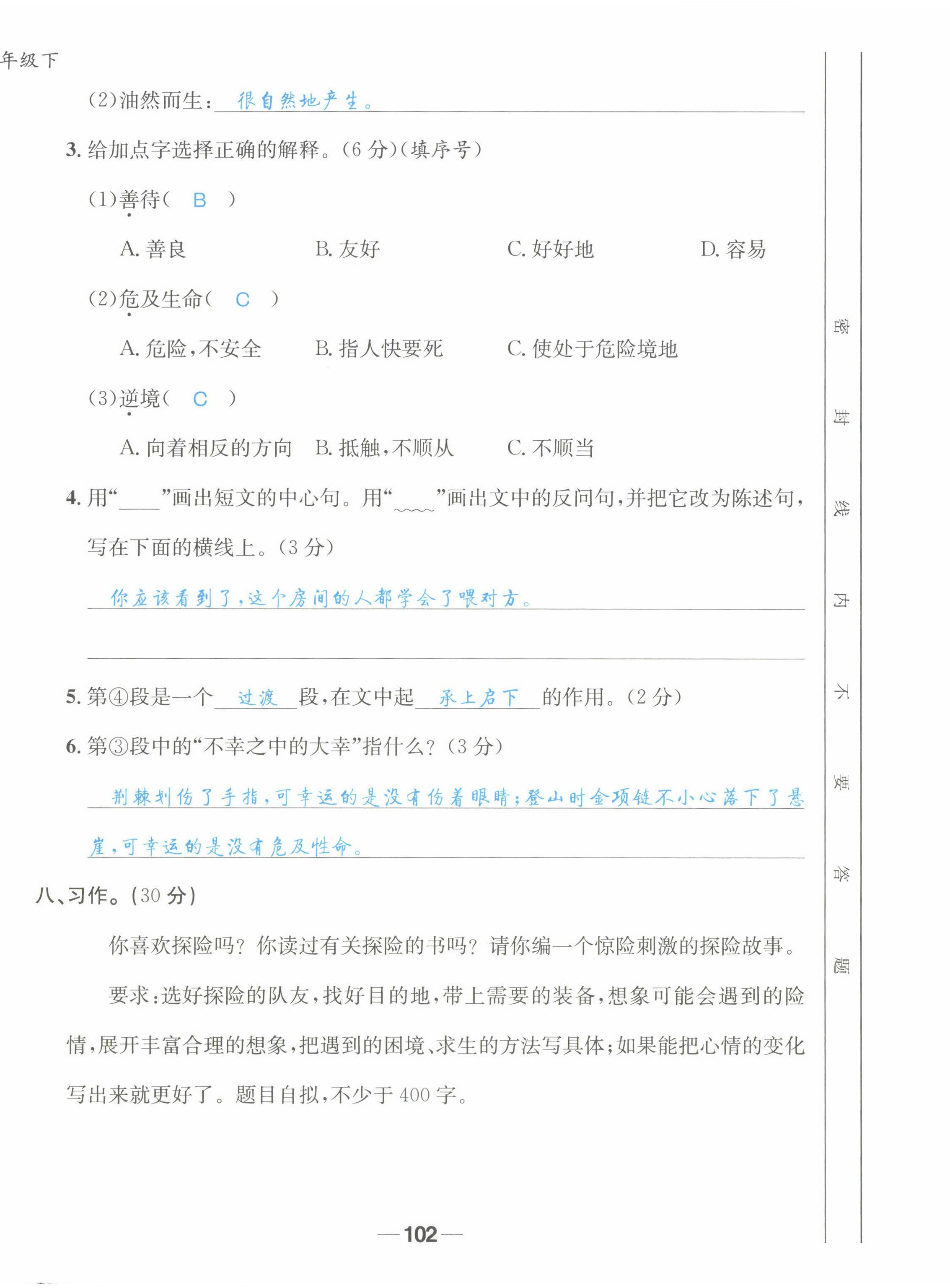 注:目前有些书本章节名称可能整理的还不是很完善,但都是按照顺序排列的,请同学们按照顺序仔细查找。练习册 2022年天府名校优课练五年级语文下册人教版 答案主要是用来给同学们做完题方便对答案用的,请勿直接抄袭。