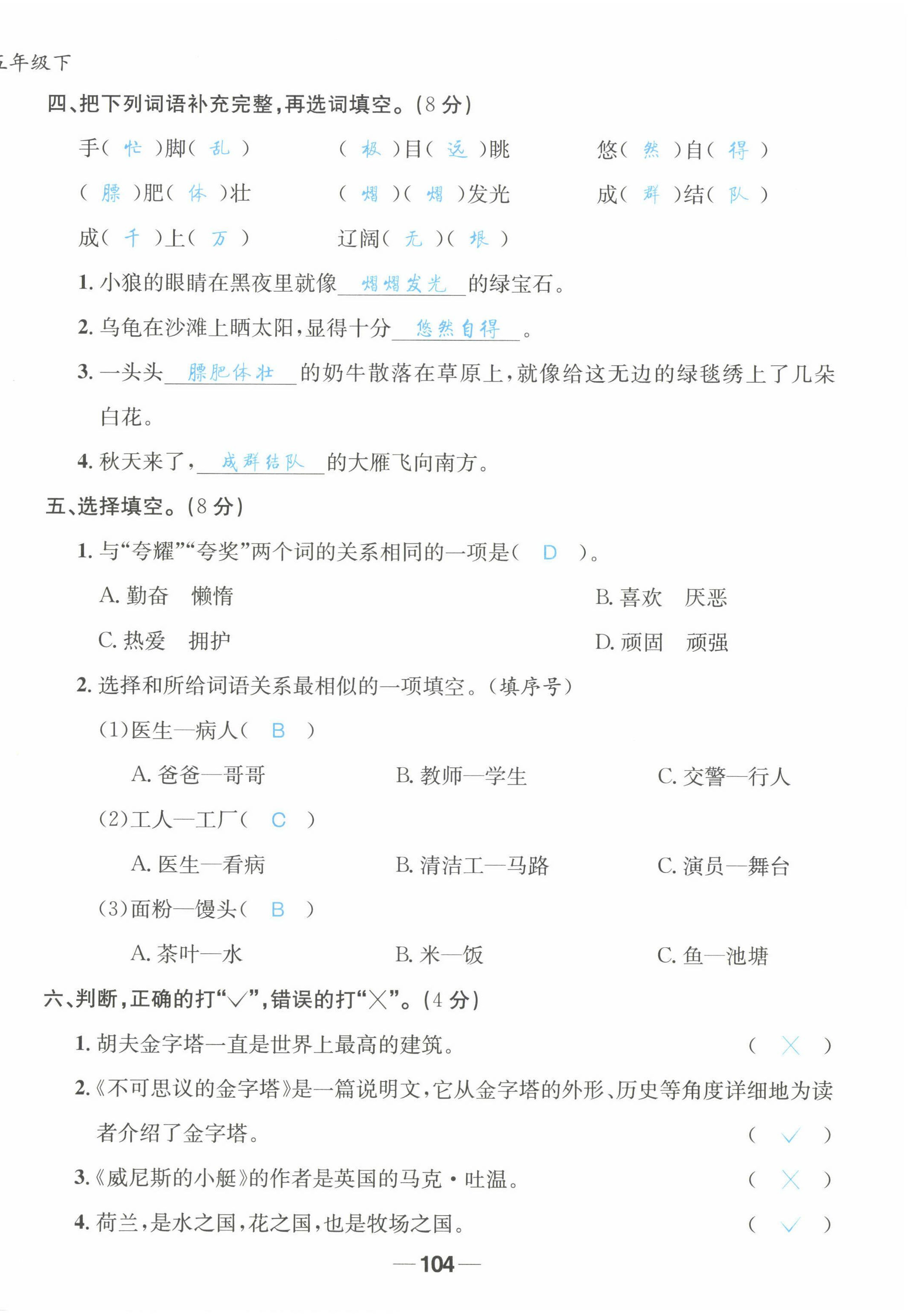 注:目前有些书本章节名称可能整理的还不是很完善,但都是按照顺序排列的,请同学们按照顺序仔细查找。练习册 2022年天府名校优课练五年级语文下册人教版 答案主要是用来给同学们做完题方便对答案用的,请勿直接抄袭。