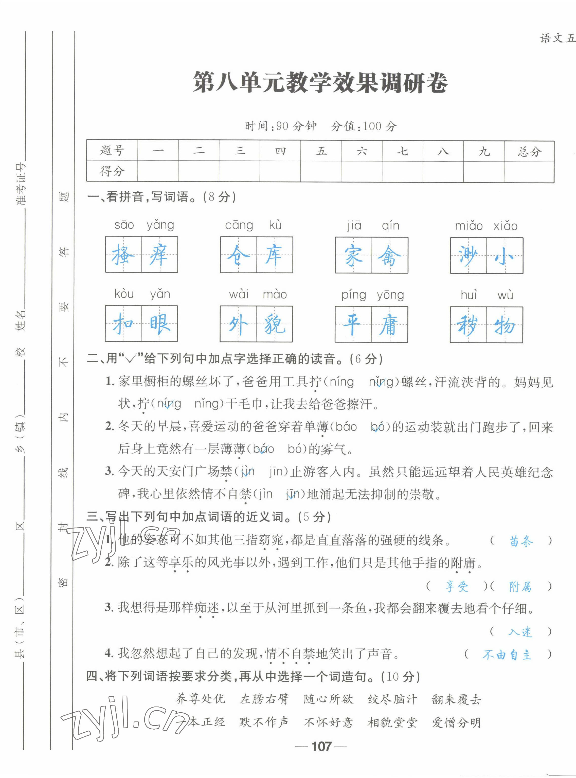 注:目前有些书本章节名称可能整理的还不是很完善,但都是按照顺序排列的,请同学们按照顺序仔细查找。练习册 2022年天府名校优课练五年级语文下册人教版 答案主要是用来给同学们做完题方便对答案用的,请勿直接抄袭。