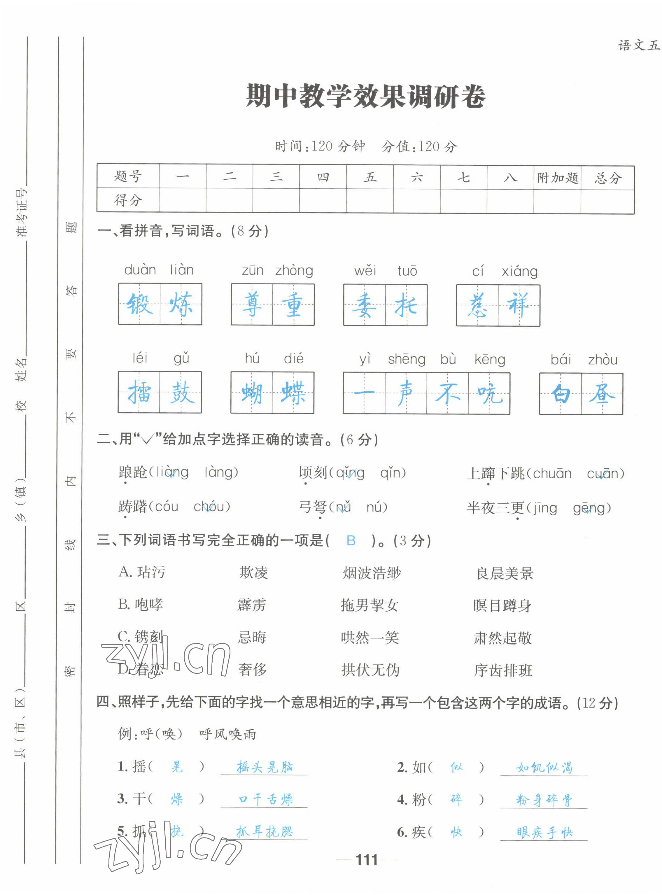 注:目前有些书本章节名称可能整理的还不是很完善,但都是按照顺序排列的,请同学们按照顺序仔细查找。练习册 2022年天府名校优课练五年级语文下册人教版 答案主要是用来给同学们做完题方便对答案用的,请勿直接抄袭。