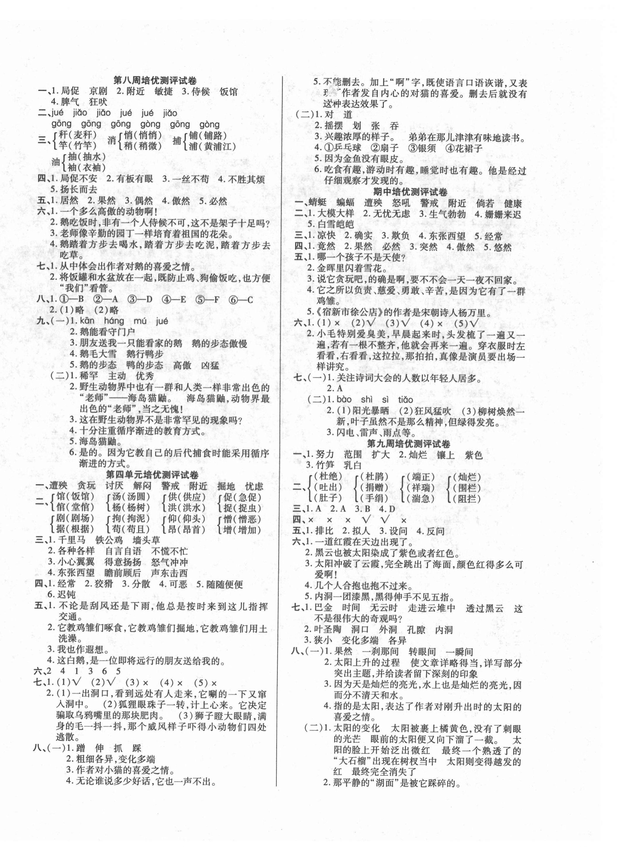 注:目前有些书本章节名称可能整理的还不是很完善,但都是按照顺序排列的,请同学们按照顺序仔细查找。练习册 2022年培优名卷四年级语文下册人教版A版 答案主要是用来给同学们做完题方便对答案用的,请勿直接抄袭。