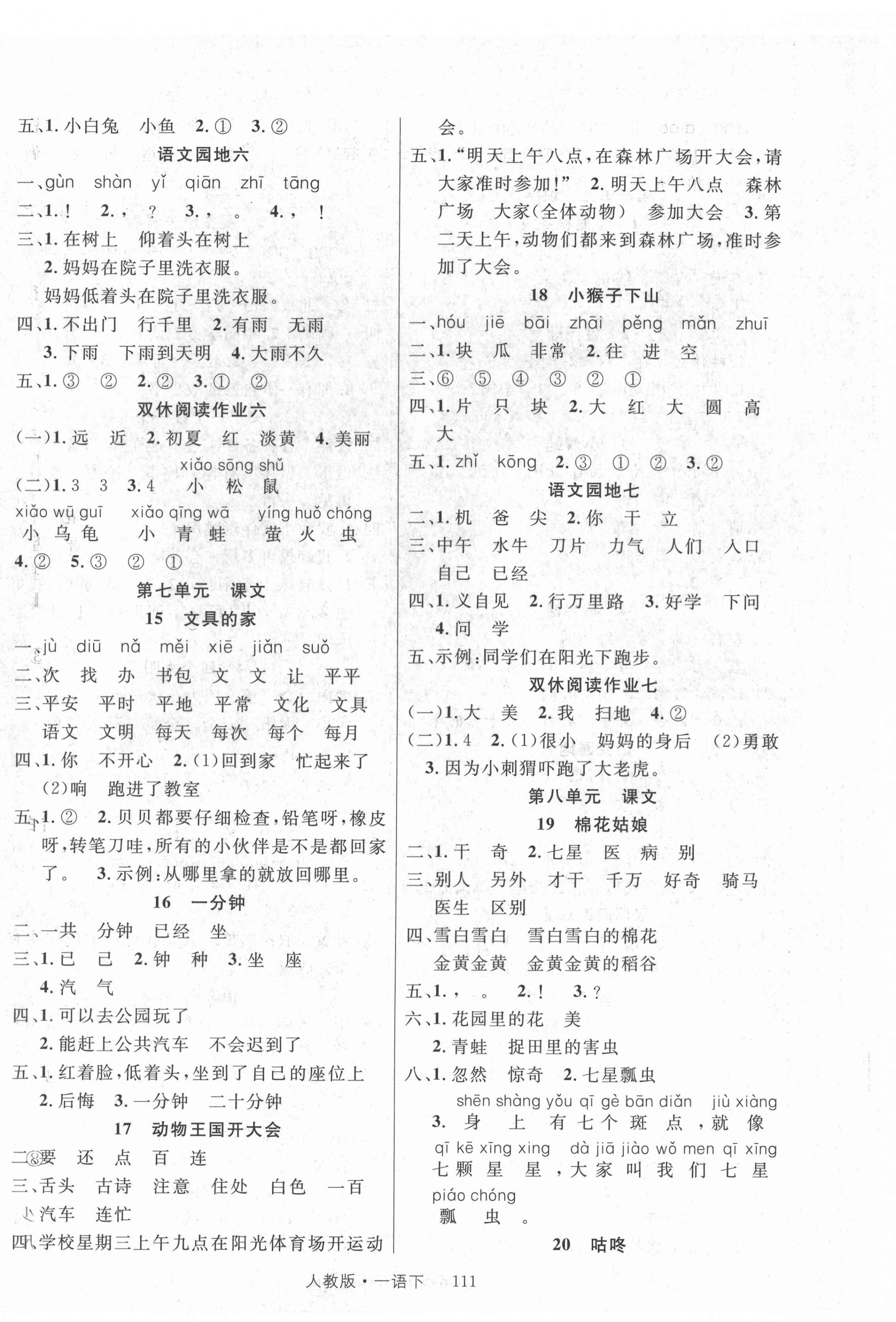 注:目前有些书本章节名称可能整理的还不是很完善,但都是按照顺序排列的,请同学们按照顺序仔细查找。练习册 2022年轻松学习100分一年级语文下册人教版 答案主要是用来给同学们做完题方便对答案用的,请勿直接抄袭。