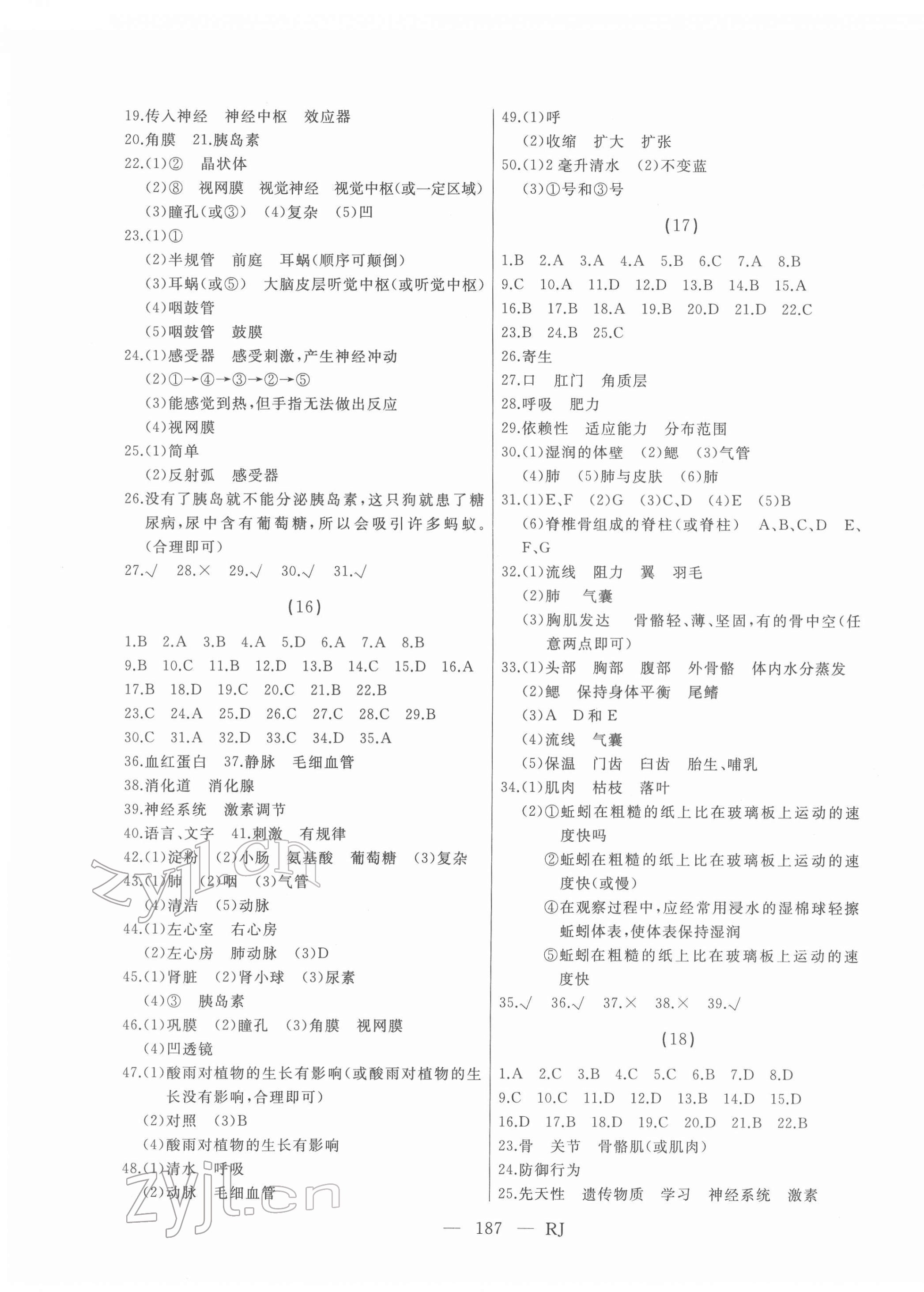 注:目前有些书本章节名称可能整理的还不是很完善,但都是按照顺序排列的,请同学们按照顺序仔细查找。练习册 2022年总复习测试生物人教版 答案主要是用来给同学们做完题方便对答案用的,请勿直接抄袭。