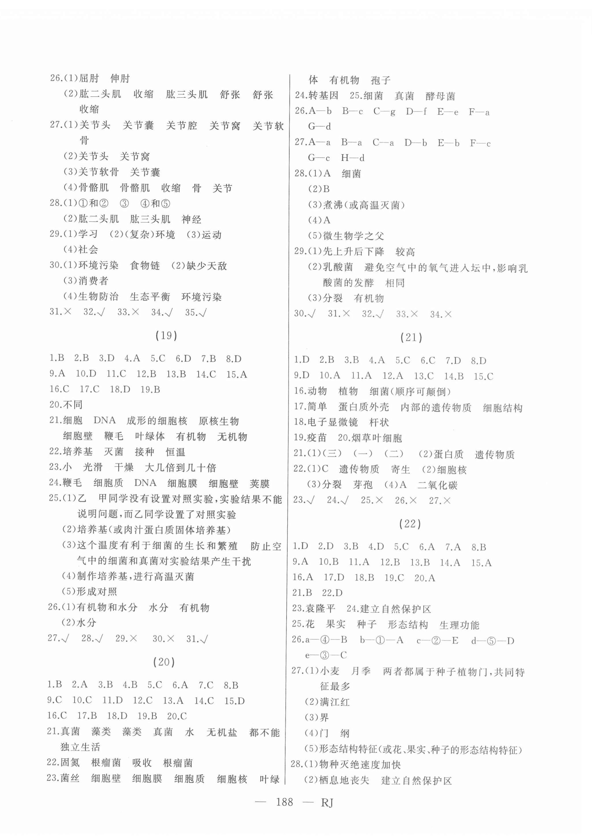 注:目前有些书本章节名称可能整理的还不是很完善,但都是按照顺序排列的,请同学们按照顺序仔细查找。练习册 2022年总复习测试生物人教版 答案主要是用来给同学们做完题方便对答案用的,请勿直接抄袭。