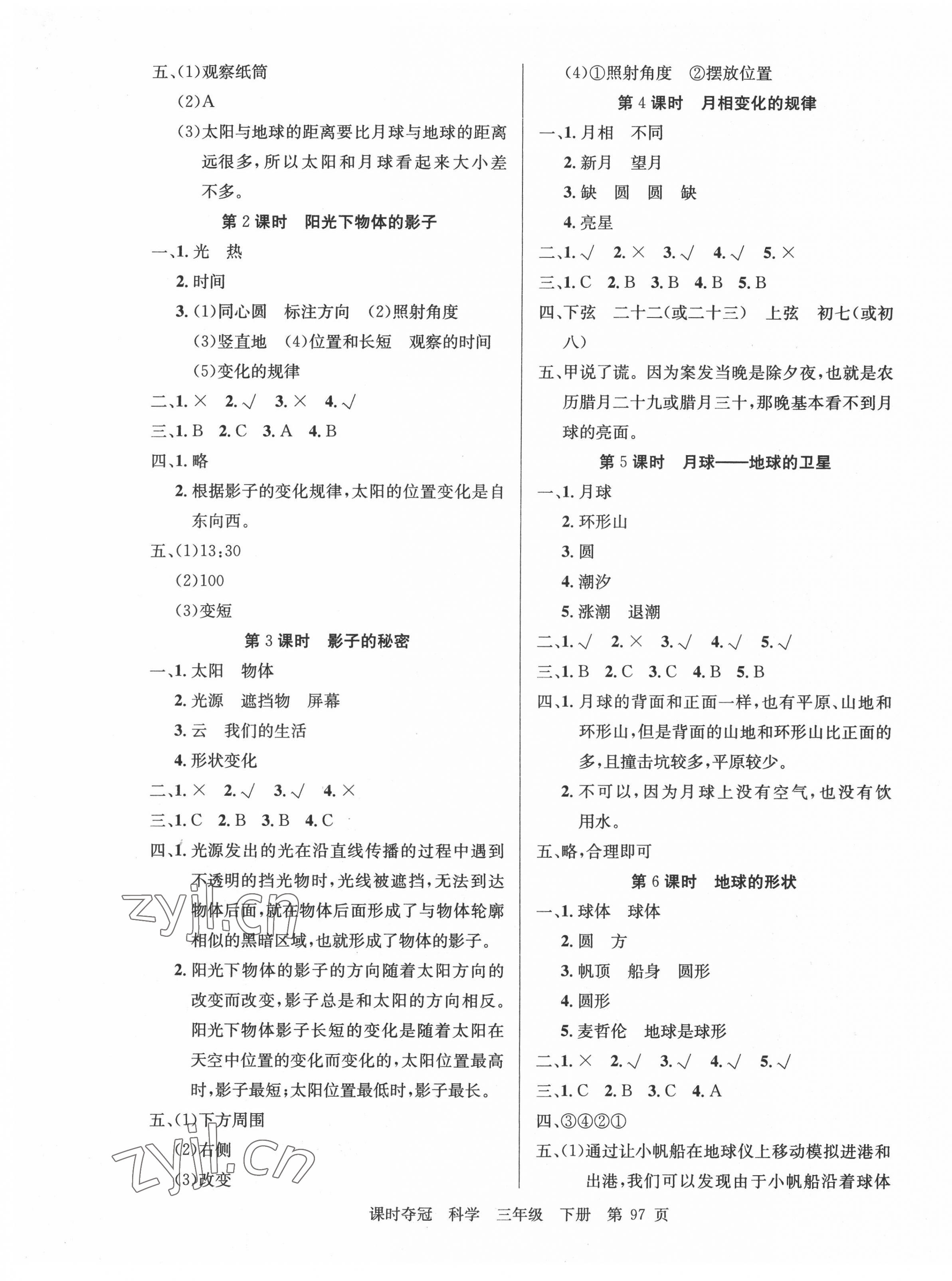 注:目前有些书本章节名称可能整理的还不是很完善,但都是按照顺序排列的,请同学们按照顺序仔细查找。练习册 2022年课时夺冠三年级科学下册教科版 答案主要是用来给同学们做完题方便对答案用的,请勿直接抄袭。