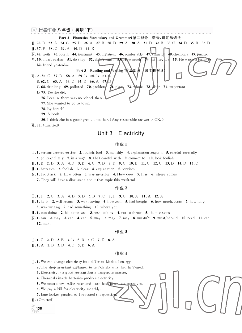 2022年上海作业八年级英语下册沪教版
