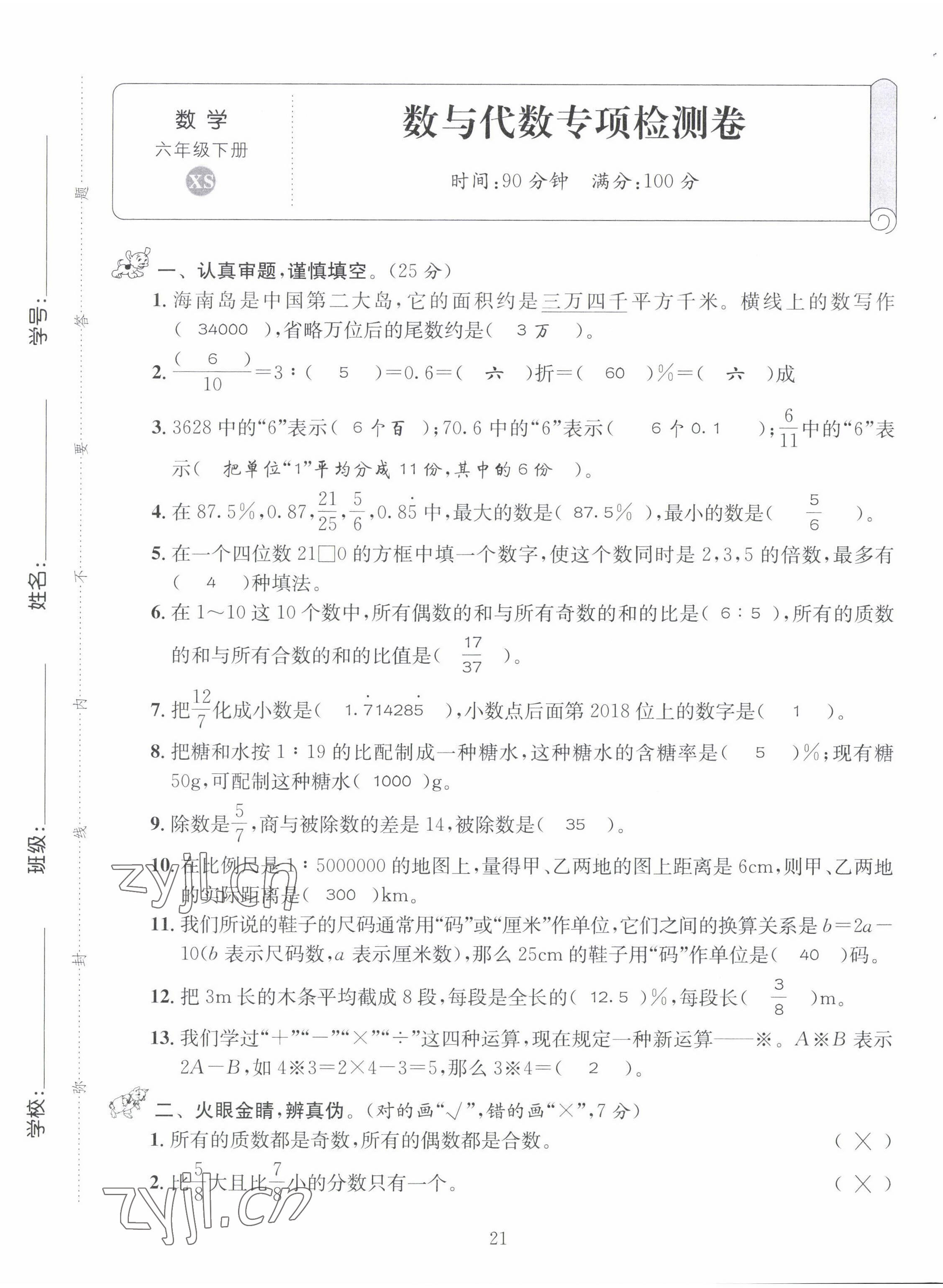 注:目前有些书本章节名称可能整理的还不是很完善,但都是按照顺序排列的,请同学们按照顺序仔细查找。练习册 2022年创新名校秘题六年级数学下册西师大版 答案主要是用来给同学们做完题方便对答案用的,请勿直接抄袭。