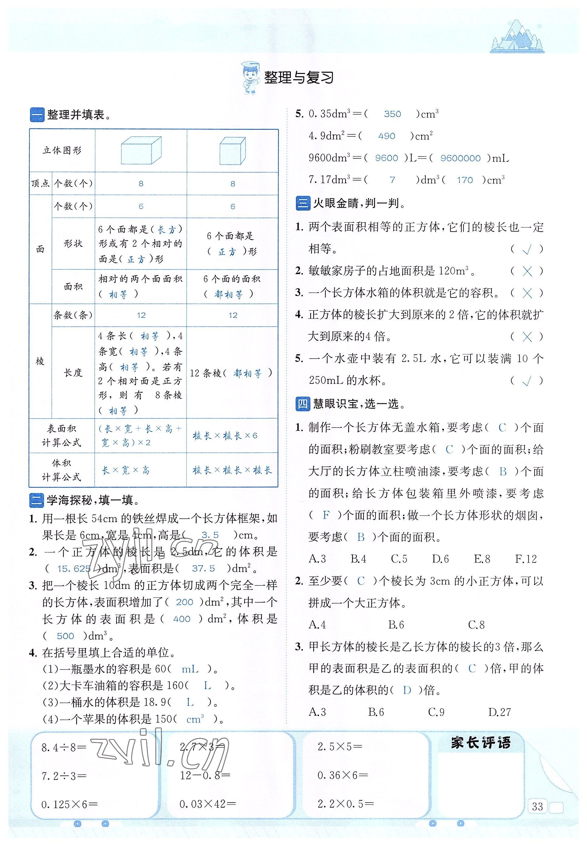 注:目前有些书本章节名称可能整理的还不是很完善,但都是按照顺序排列的,请同学们按照顺序仔细查找。练习册 2022年创新名校秘题五年级数学下册西师大版 答案主要是用来给同学们做完题方便对答案用的,请勿直接抄袭。