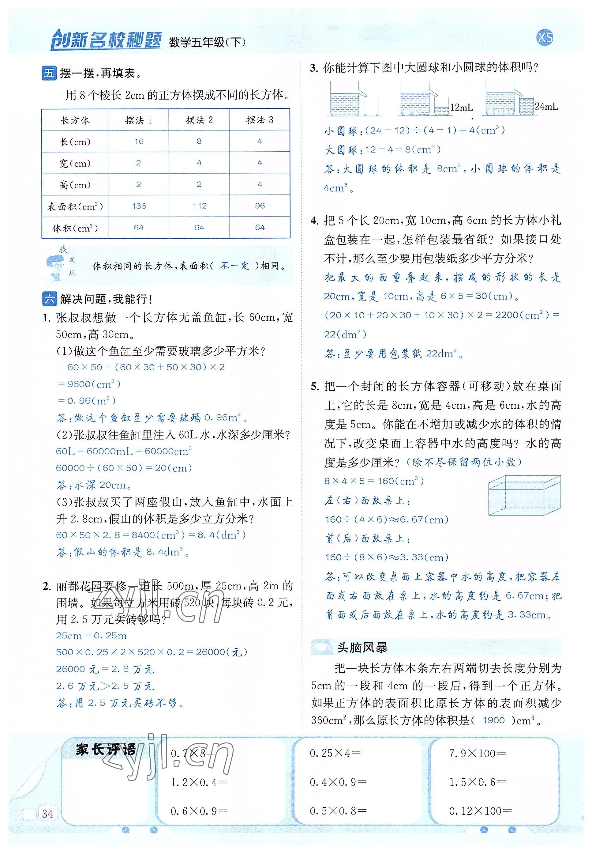 注:目前有些书本章节名称可能整理的还不是很完善,但都是按照顺序排列的,请同学们按照顺序仔细查找。练习册 2022年创新名校秘题五年级数学下册西师大版 答案主要是用来给同学们做完题方便对答案用的,请勿直接抄袭。