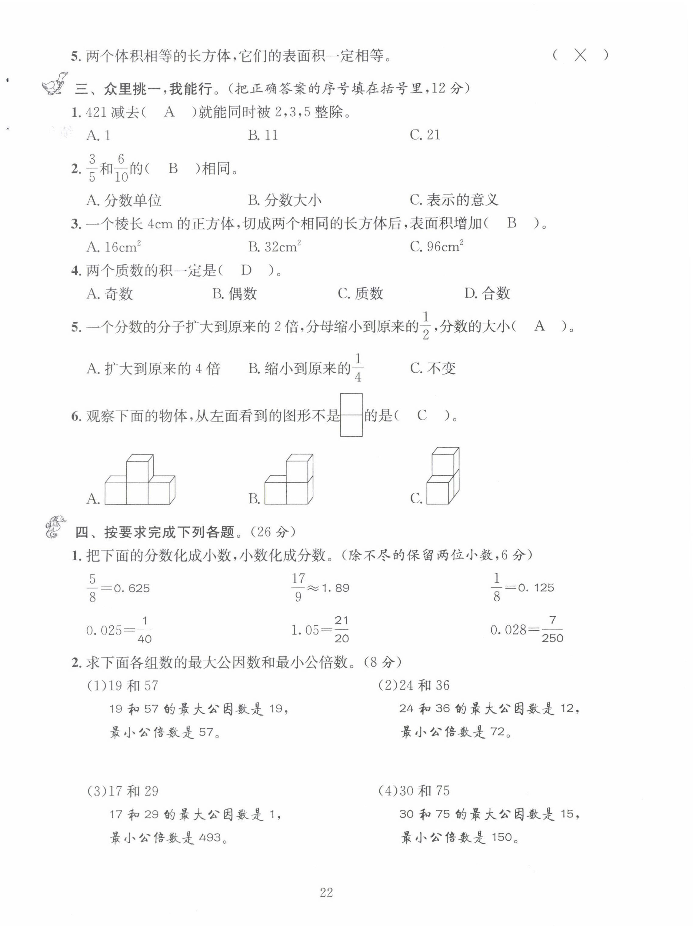 注:目前有些书本章节名称可能整理的还不是很完善,但都是按照顺序排列的,请同学们按照顺序仔细查找。练习册 2022年创新名校秘题五年级数学下册西师大版 答案主要是用来给同学们做完题方便对答案用的,请勿直接抄袭。