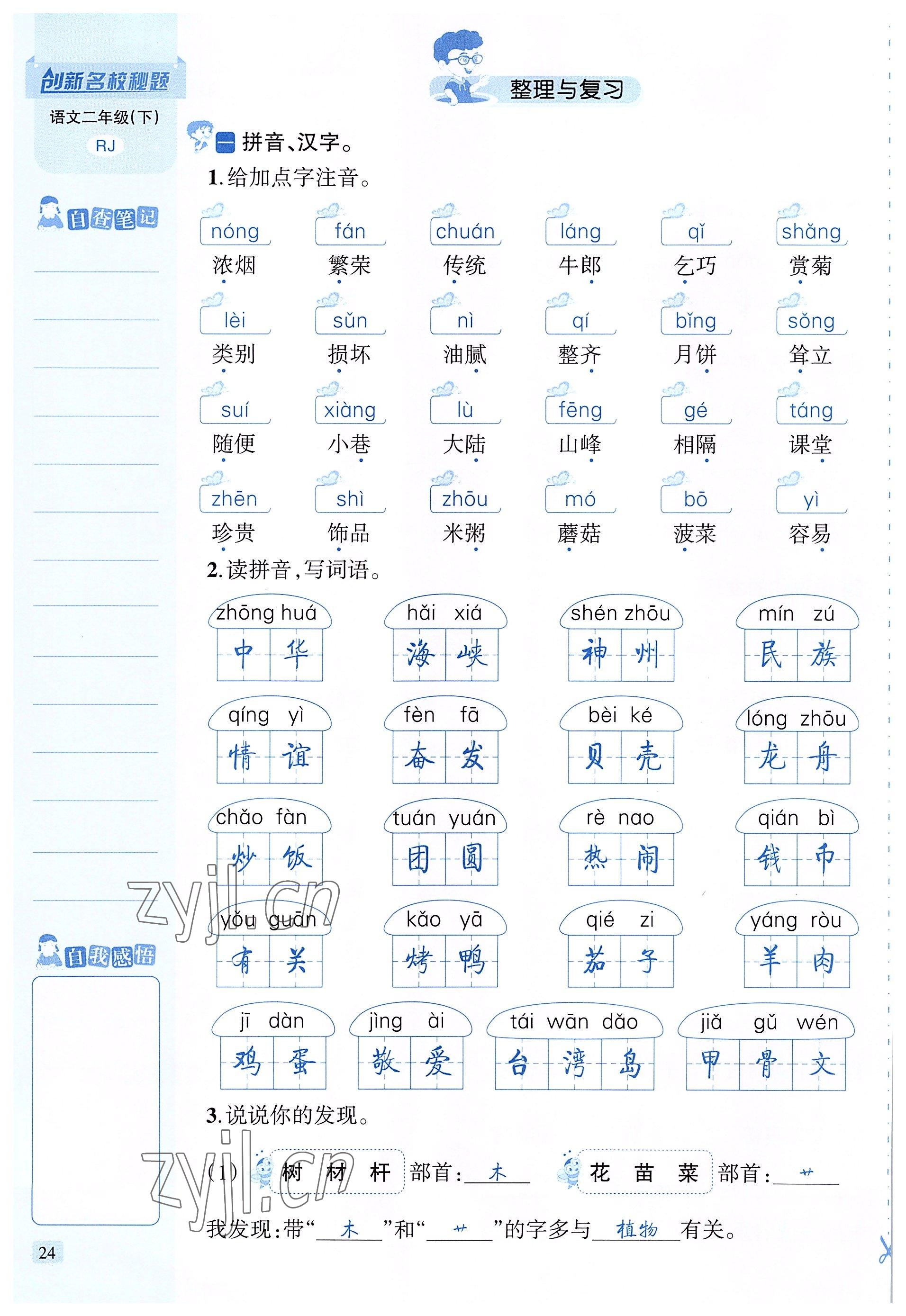 注:目前有些书本章节名称可能整理的还不是很完善,但都是按照顺序排列的,请同学们按照顺序仔细查找。练习册 2022年创新名校秘题二年级语文下册人教版 答案主要是用来给同学们做完题方便对答案用的,请勿直接抄袭。
