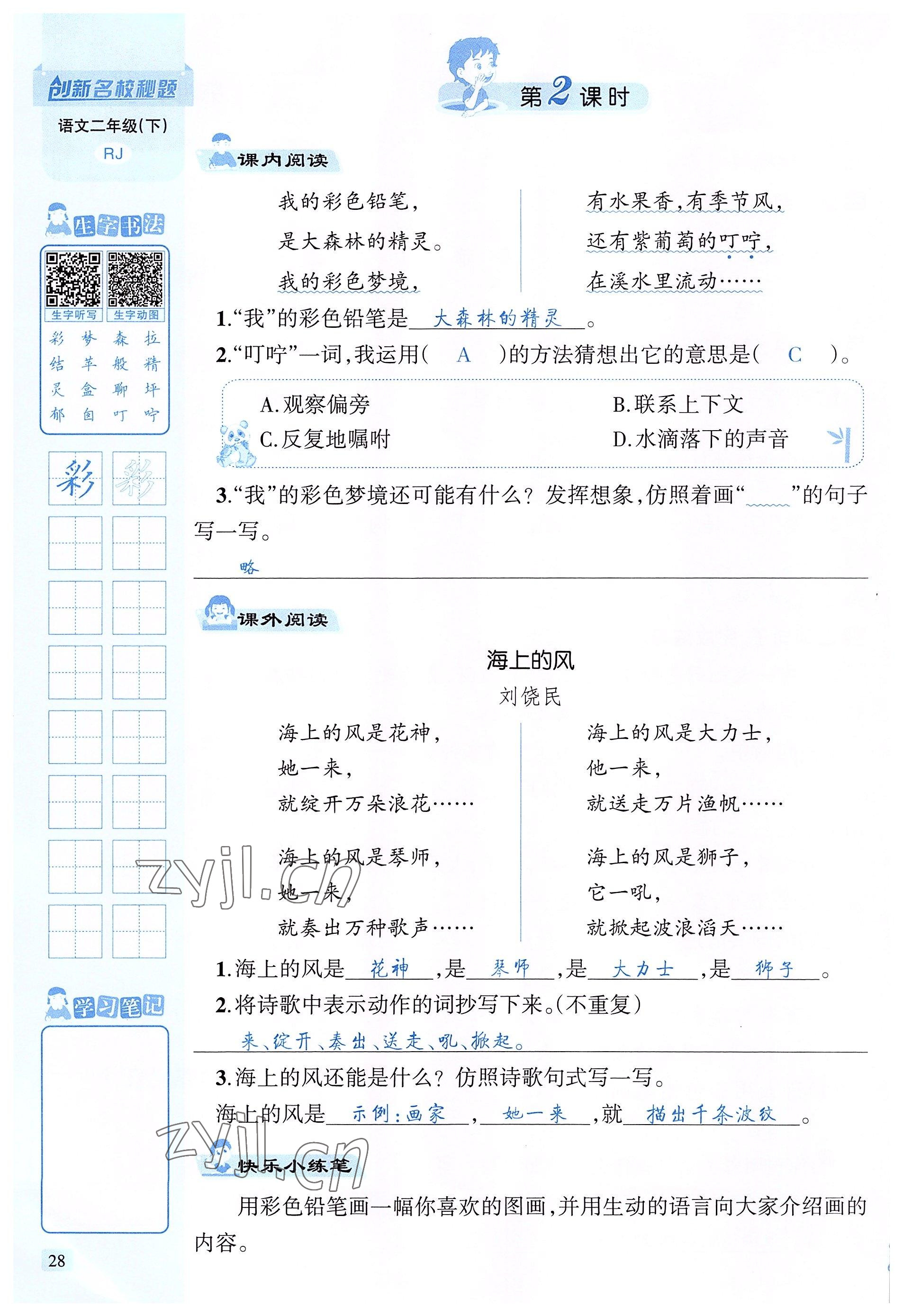注:目前有些书本章节名称可能整理的还不是很完善,但都是按照顺序排列的,请同学们按照顺序仔细查找。练习册 2022年创新名校秘题二年级语文下册人教版 答案主要是用来给同学们做完题方便对答案用的,请勿直接抄袭。