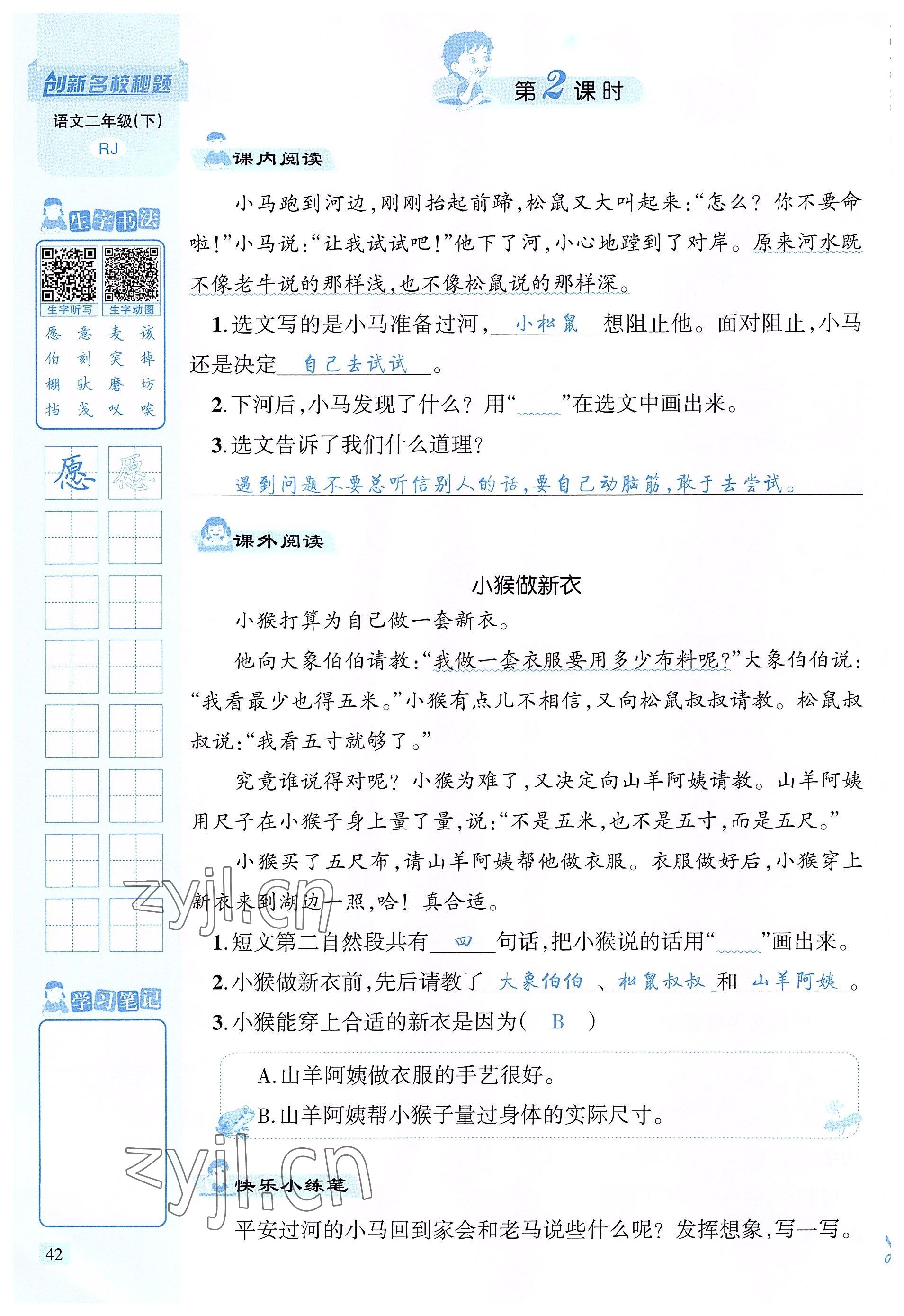 注:目前有些书本章节名称可能整理的还不是很完善,但都是按照顺序排列的,请同学们按照顺序仔细查找。练习册 2022年创新名校秘题二年级语文下册人教版 答案主要是用来给同学们做完题方便对答案用的,请勿直接抄袭。