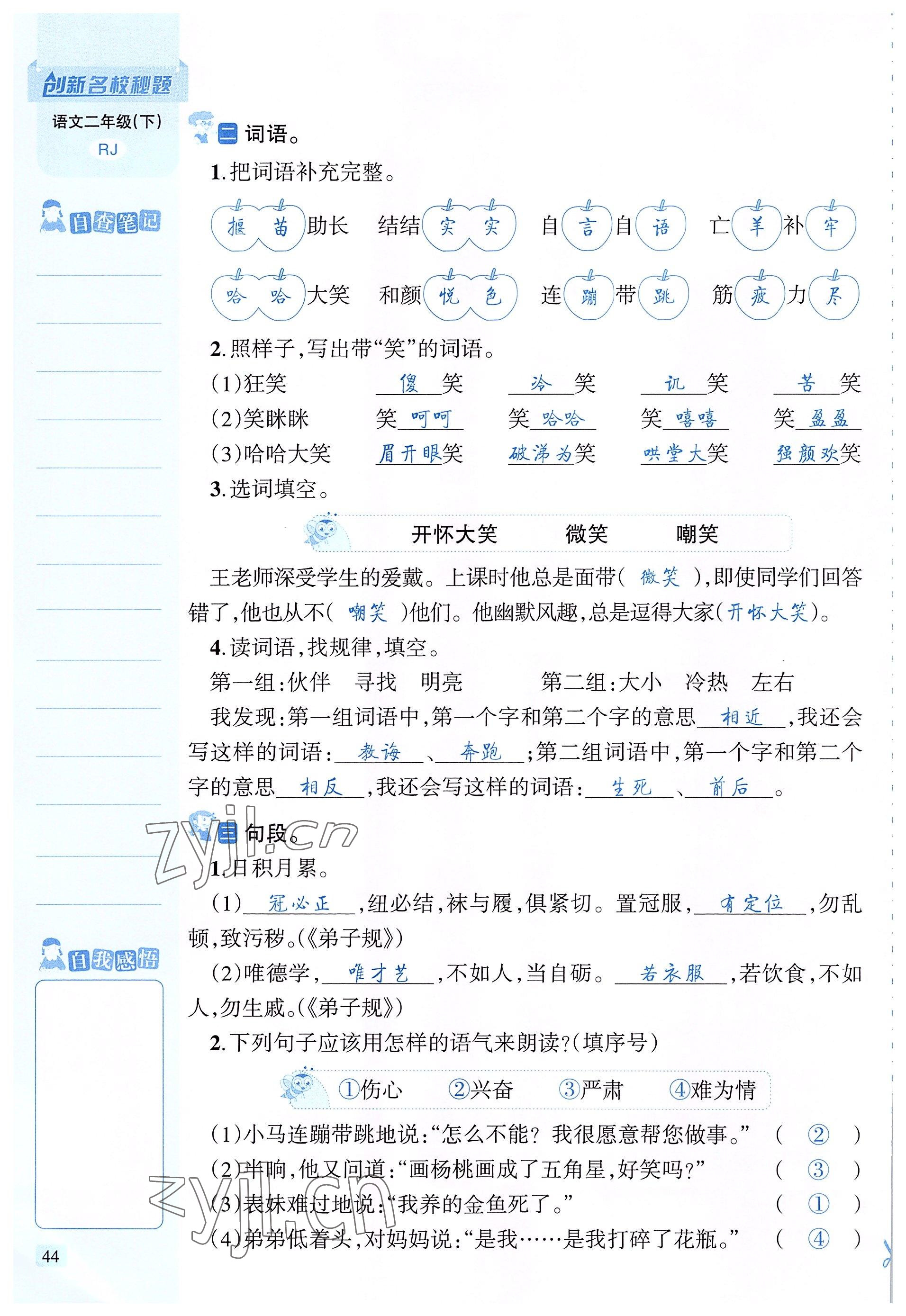 注:目前有些书本章节名称可能整理的还不是很完善,但都是按照顺序排列的,请同学们按照顺序仔细查找。练习册 2022年创新名校秘题二年级语文下册人教版 答案主要是用来给同学们做完题方便对答案用的,请勿直接抄袭。