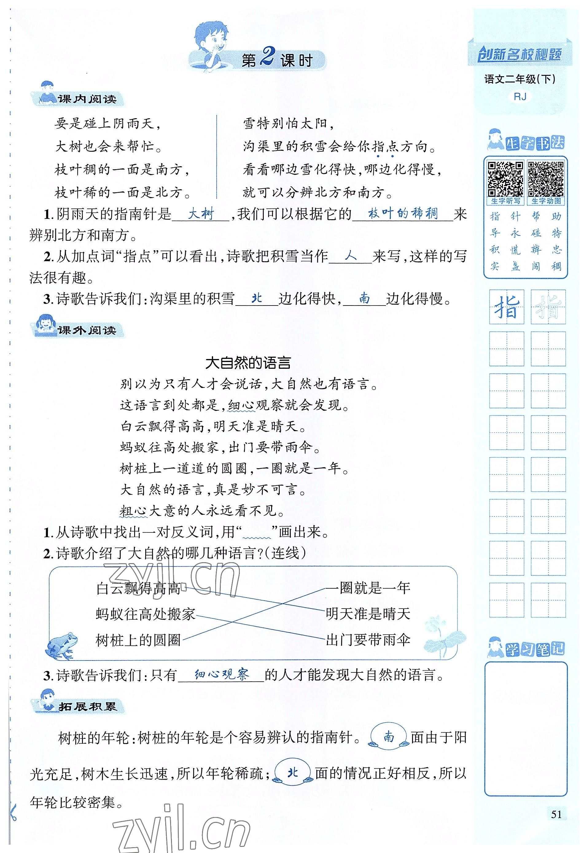 注:目前有些书本章节名称可能整理的还不是很完善,但都是按照顺序排列的,请同学们按照顺序仔细查找。练习册 2022年创新名校秘题二年级语文下册人教版 答案主要是用来给同学们做完题方便对答案用的,请勿直接抄袭。