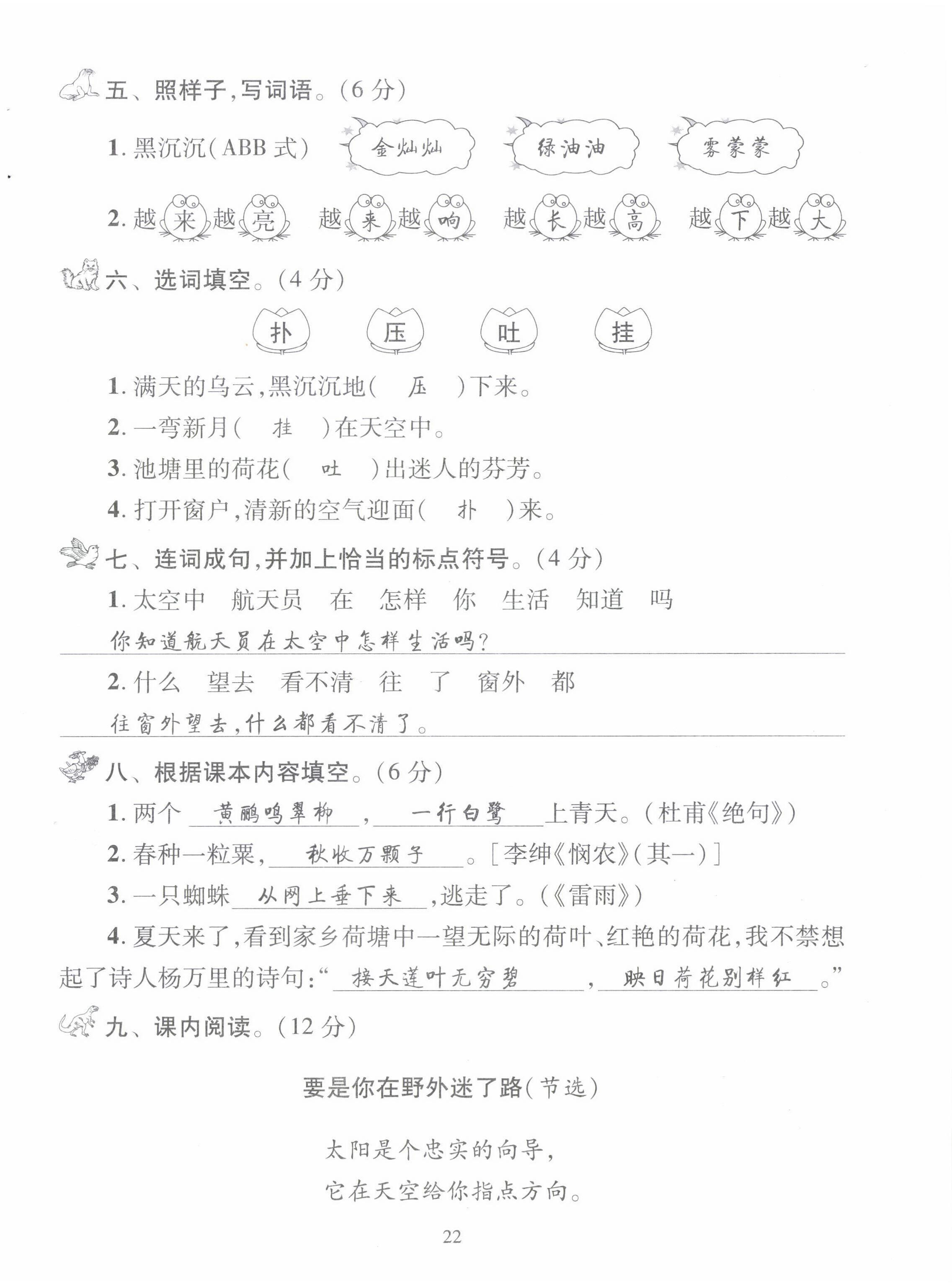 注:目前有些书本章节名称可能整理的还不是很完善,但都是按照顺序排列的,请同学们按照顺序仔细查找。练习册 2022年创新名校秘题二年级语文下册人教版 答案主要是用来给同学们做完题方便对答案用的,请勿直接抄袭。