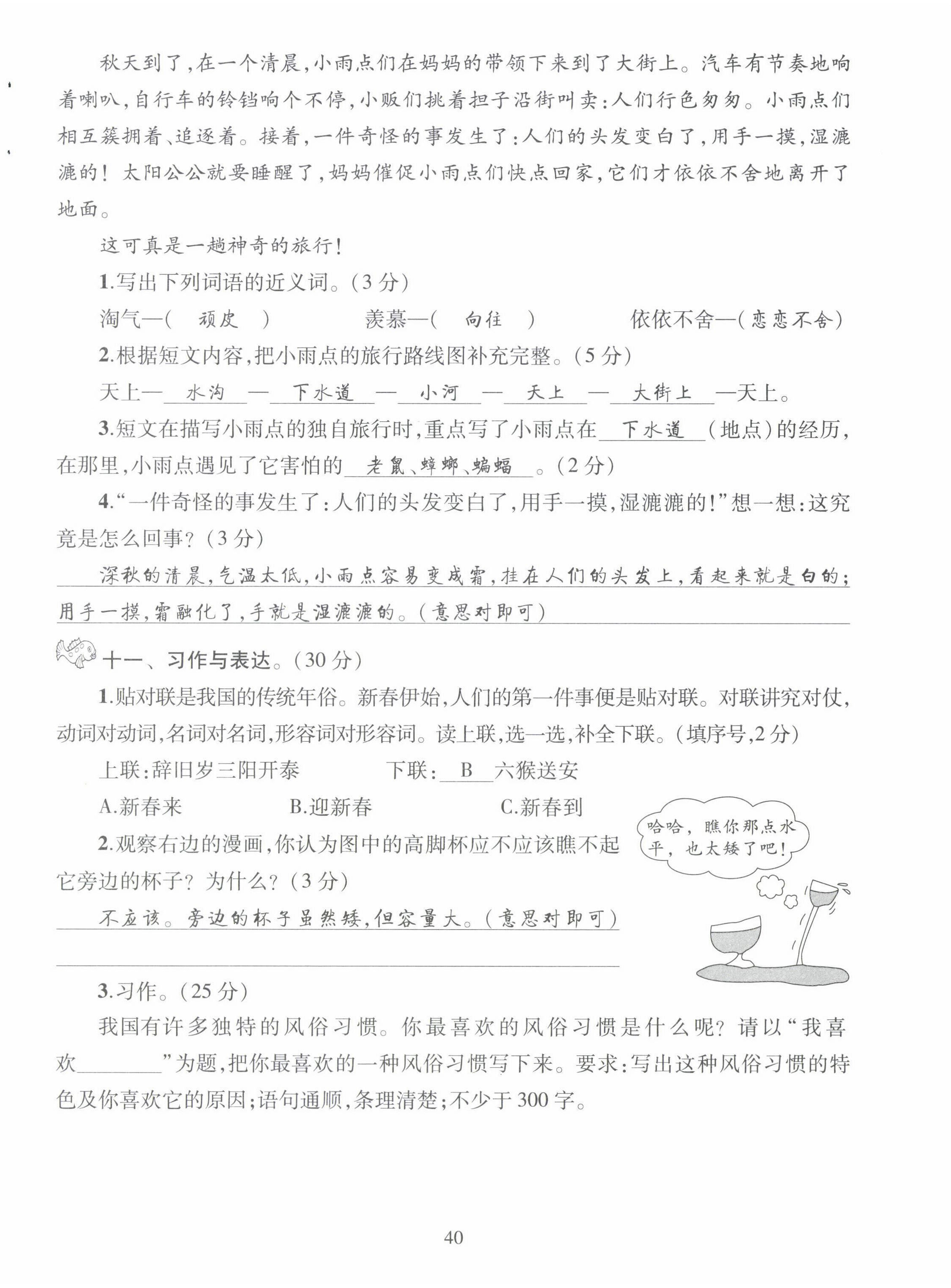 注:目前有些书本章节名称可能整理的还不是很完善,但都是按照顺序排列的,请同学们按照顺序仔细查找。练习册 2022年创新名校秘题三年级语文下册人教版 答案主要是用来给同学们做完题方便对答案用的,请勿直接抄袭。