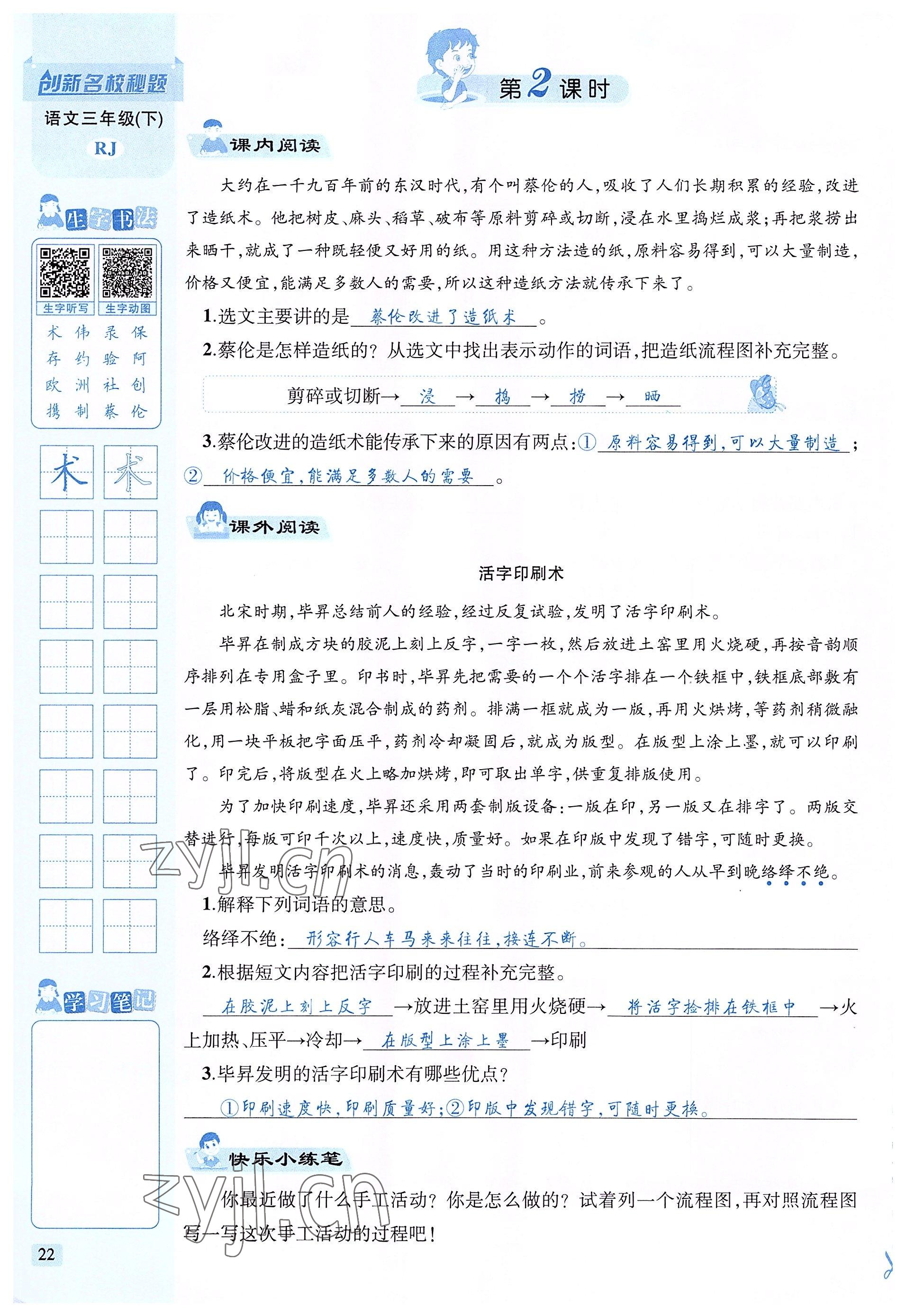 注:目前有些书本章节名称可能整理的还不是很完善,但都是按照顺序排列的,请同学们按照顺序仔细查找。练习册 2022年创新名校秘题三年级语文下册人教版 答案主要是用来给同学们做完题方便对答案用的,请勿直接抄袭。