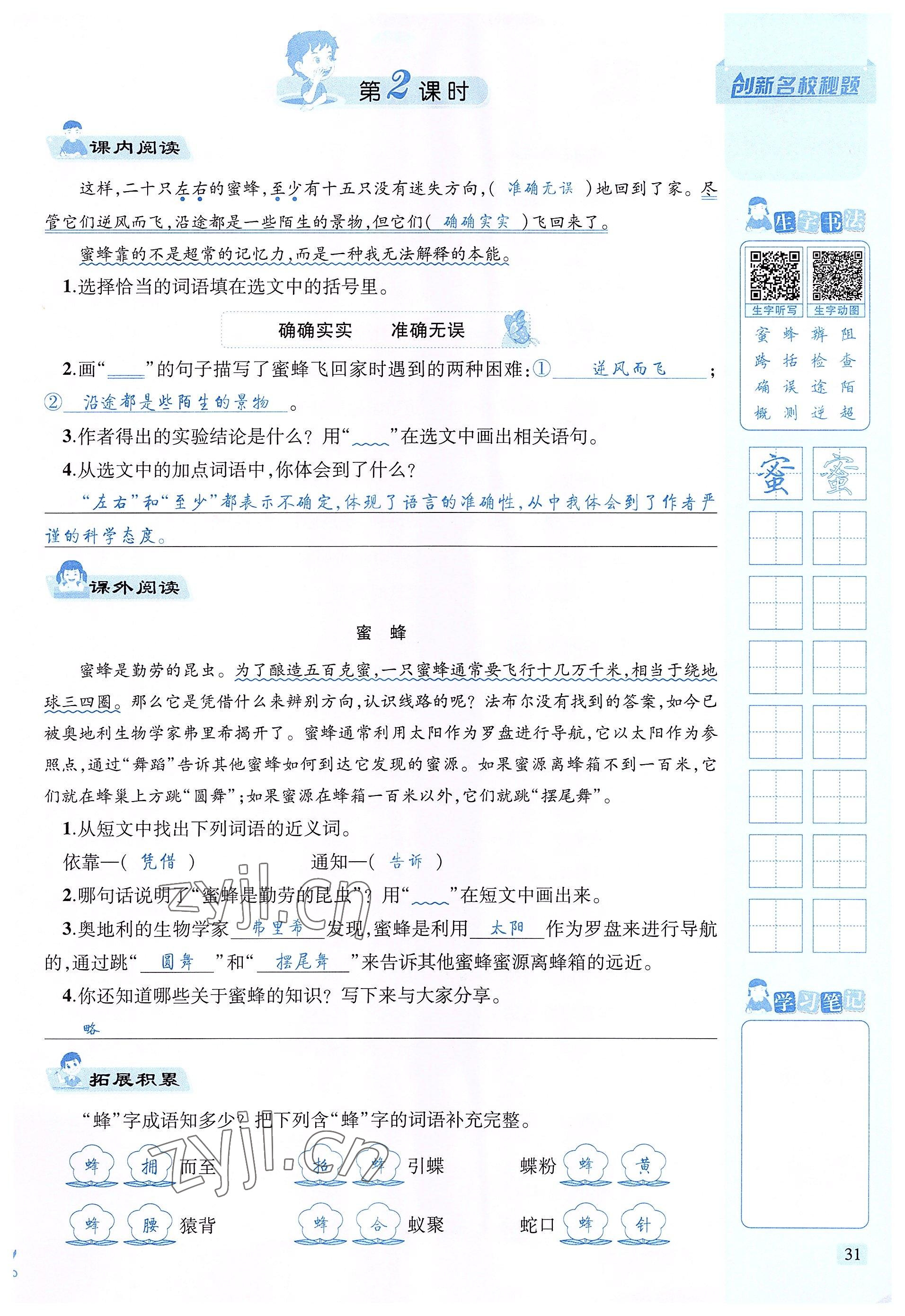 注:目前有些书本章节名称可能整理的还不是很完善,但都是按照顺序排列的,请同学们按照顺序仔细查找。练习册 2022年创新名校秘题三年级语文下册人教版 答案主要是用来给同学们做完题方便对答案用的,请勿直接抄袭。