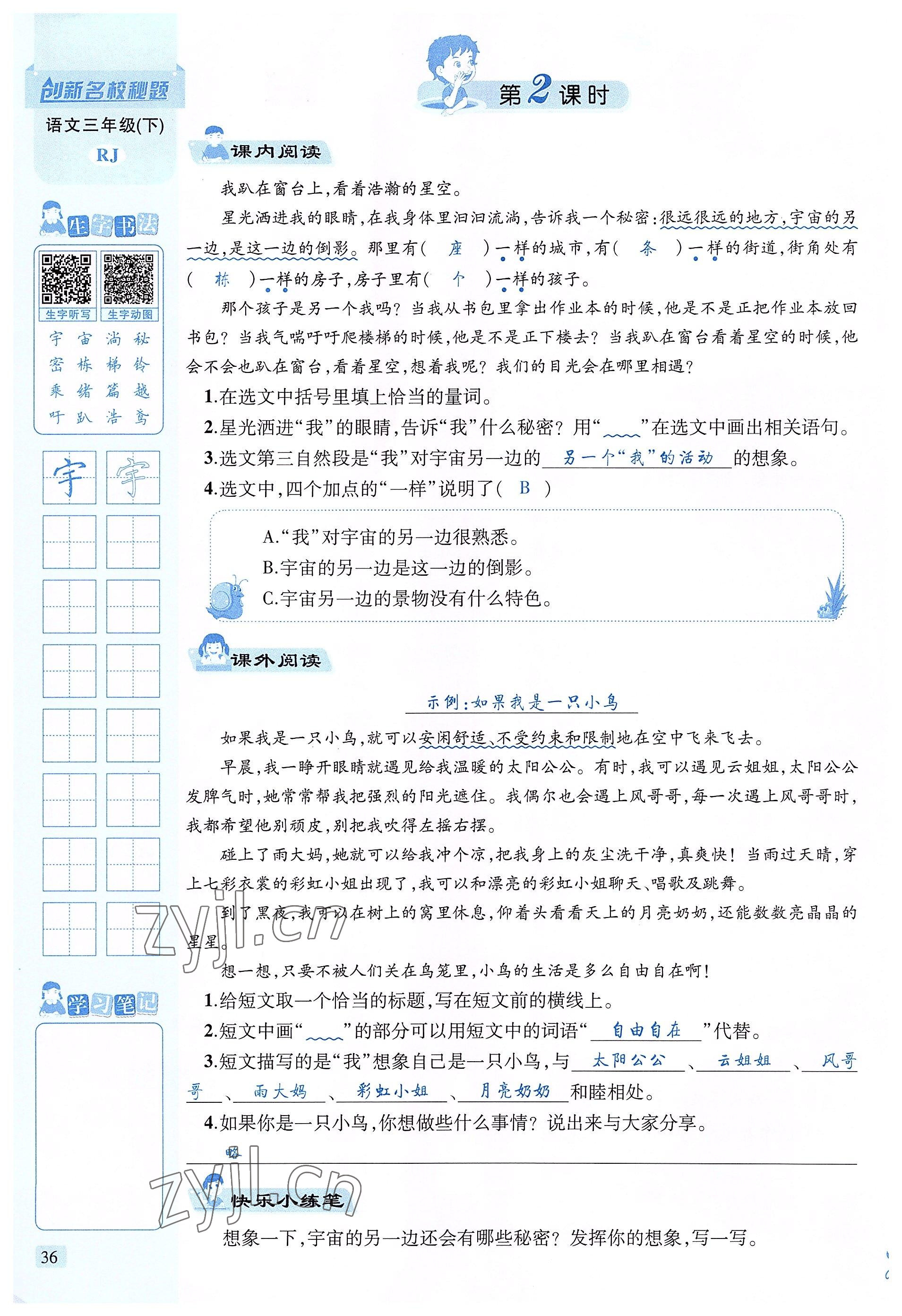 注:目前有些书本章节名称可能整理的还不是很完善,但都是按照顺序排列的,请同学们按照顺序仔细查找。练习册 2022年创新名校秘题三年级语文下册人教版 答案主要是用来给同学们做完题方便对答案用的,请勿直接抄袭。