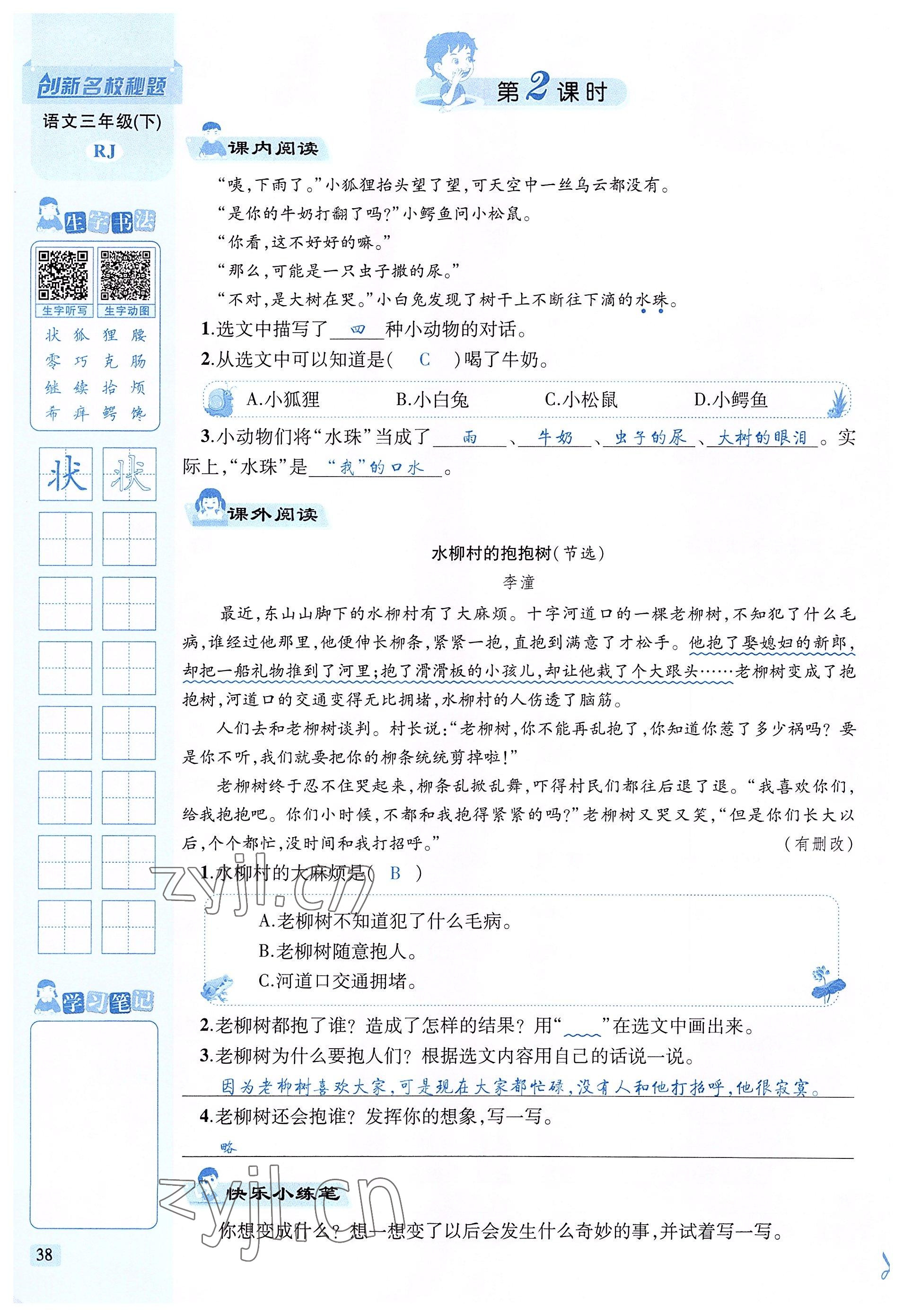 注:目前有些书本章节名称可能整理的还不是很完善,但都是按照顺序排列的,请同学们按照顺序仔细查找。练习册 2022年创新名校秘题三年级语文下册人教版 答案主要是用来给同学们做完题方便对答案用的,请勿直接抄袭。