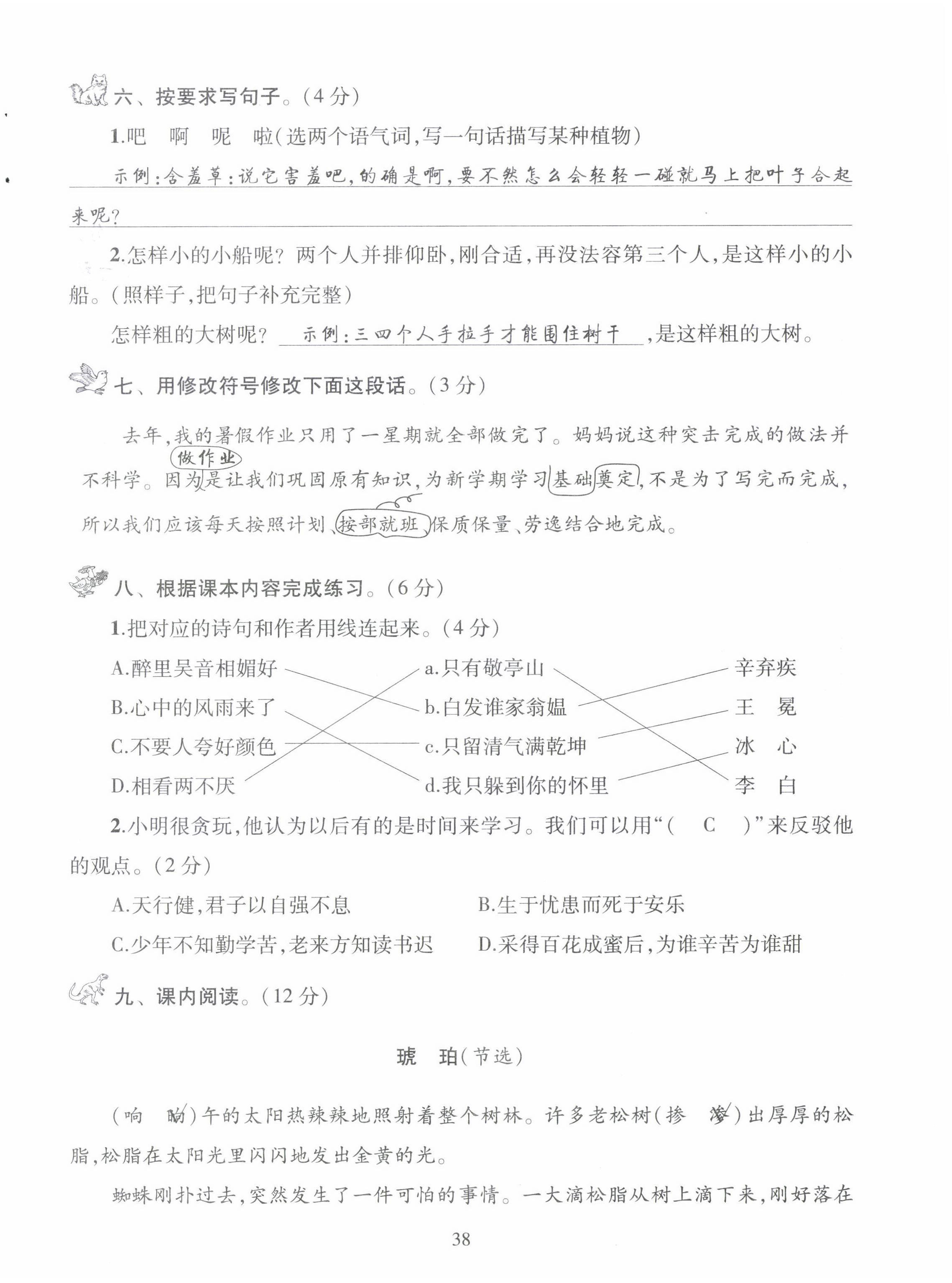 注:目前有些书本章节名称可能整理的还不是很完善,但都是按照顺序排列的,请同学们按照顺序仔细查找。练习册 2022年创新名校秘题四年级语文下册人教版 答案主要是用来给同学们做完题方便对答案用的,请勿直接抄袭。