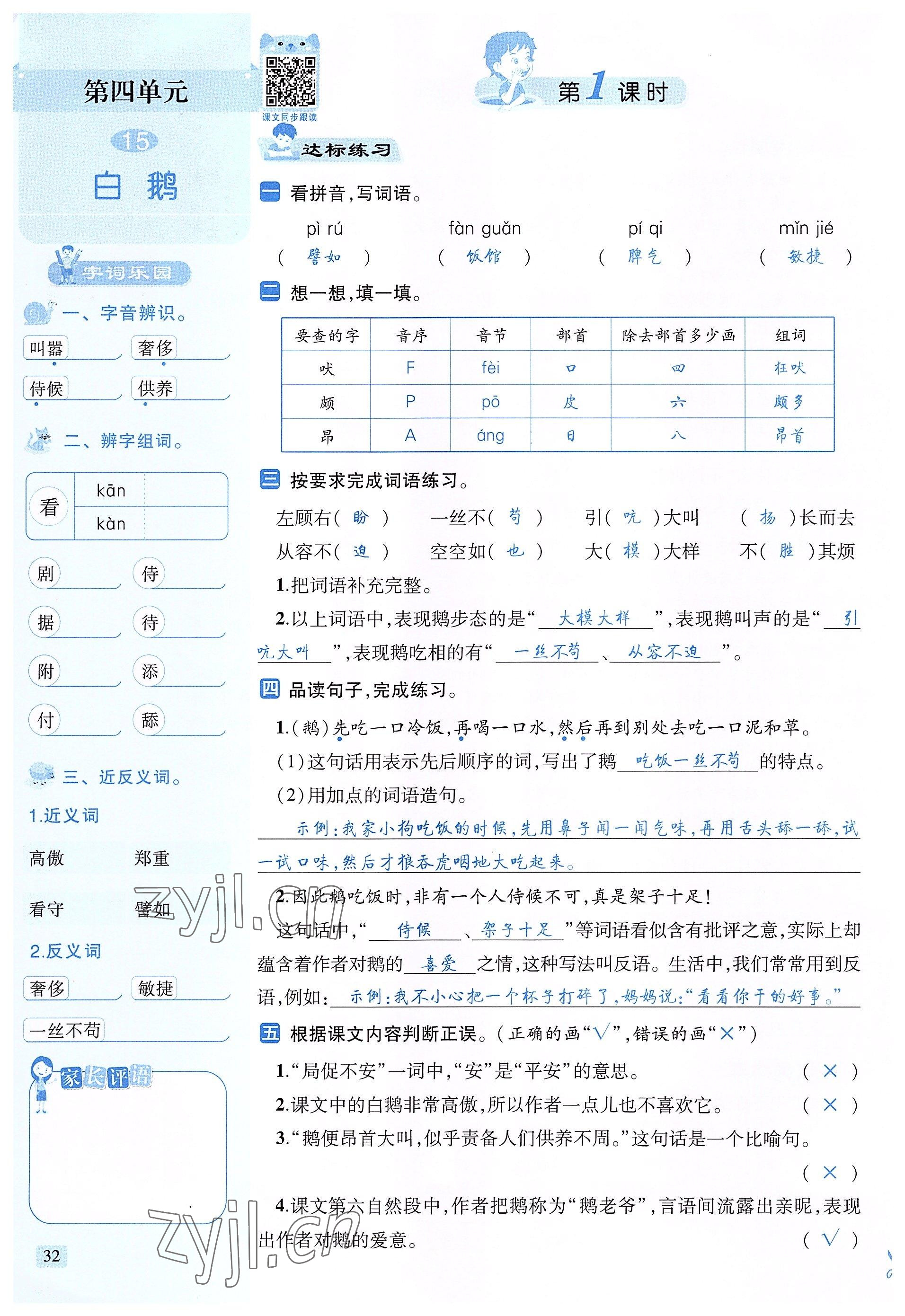 注:目前有些书本章节名称可能整理的还不是很完善,但都是按照顺序排列的,请同学们按照顺序仔细查找。练习册 2022年创新名校秘题四年级语文下册人教版 答案主要是用来给同学们做完题方便对答案用的,请勿直接抄袭。