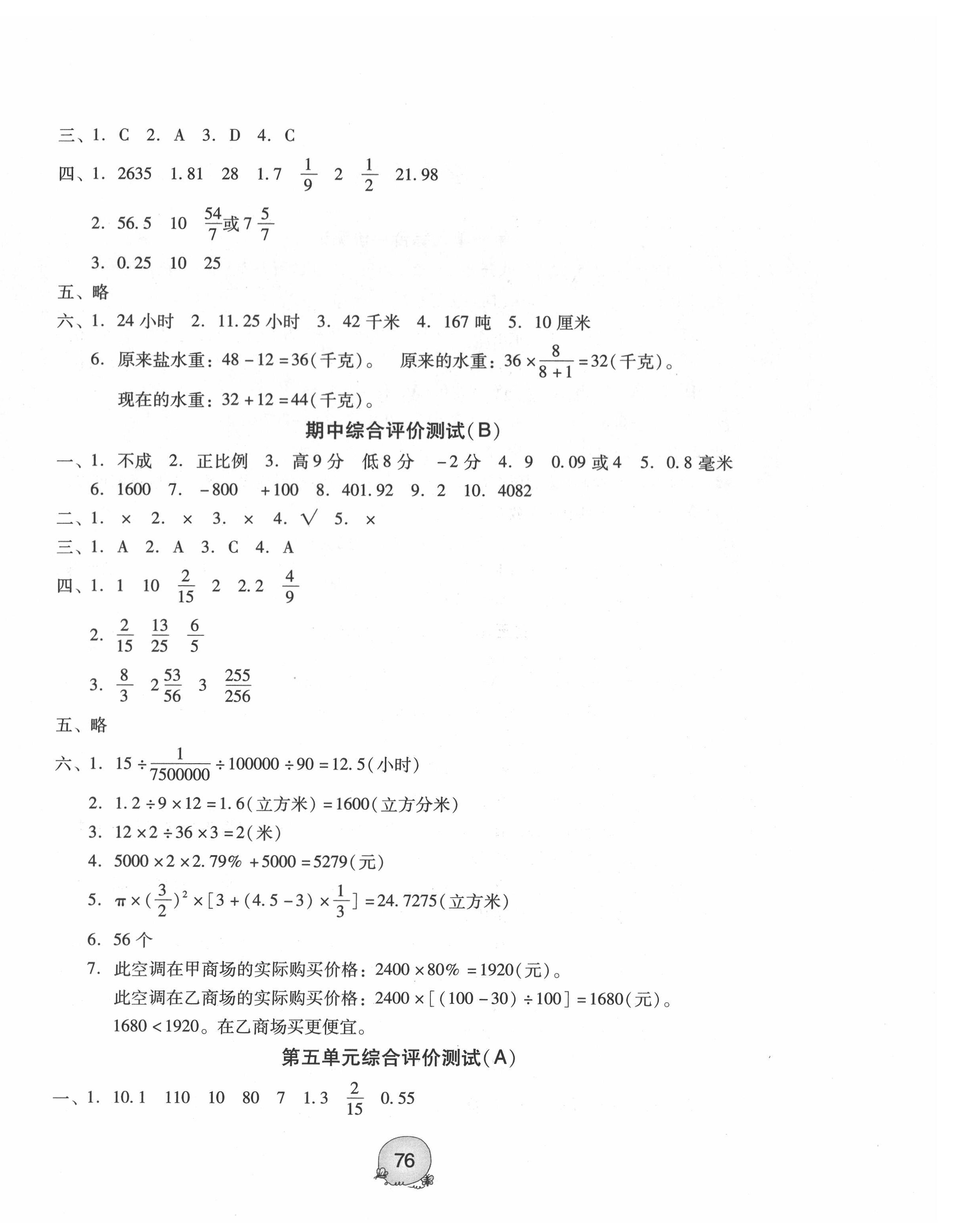 注:目前有些书本章节名称可能整理的还不是很完善,但都是按照顺序排列的,请同学们按照顺序仔细查找。练习册 2022年小学数学综合评价测试六年级下册人教版 答案主要是用来给同学们做完题方便对答案用的,请勿直接抄袭。