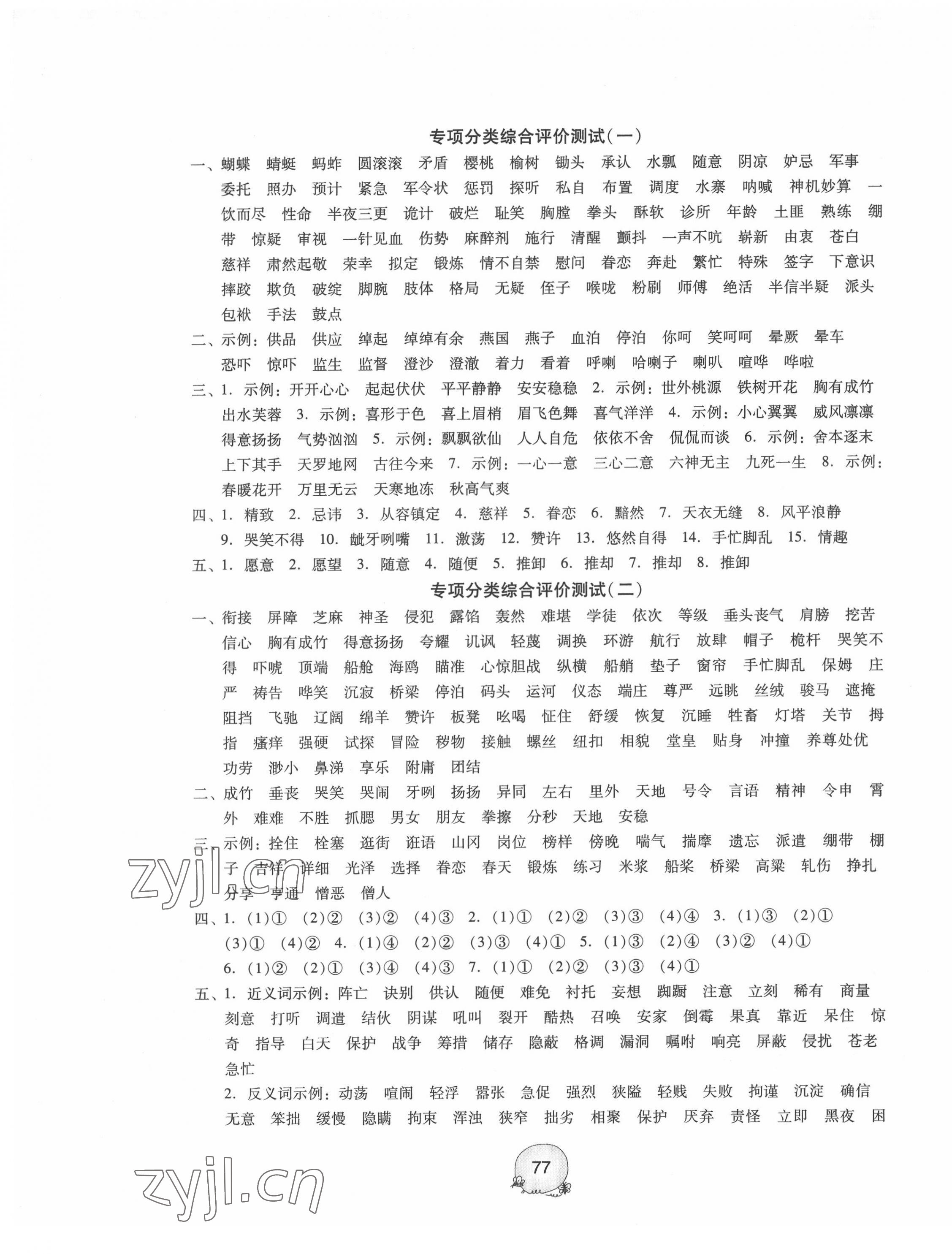 注:目前有些书本章节名称可能整理的还不是很完善,但都是按照顺序排列的,请同学们按照顺序仔细查找。练习册 2022年小学语文综合评价测试五年级下册人教版 答案主要是用来给同学们做完题方便对答案用的,请勿直接抄袭。