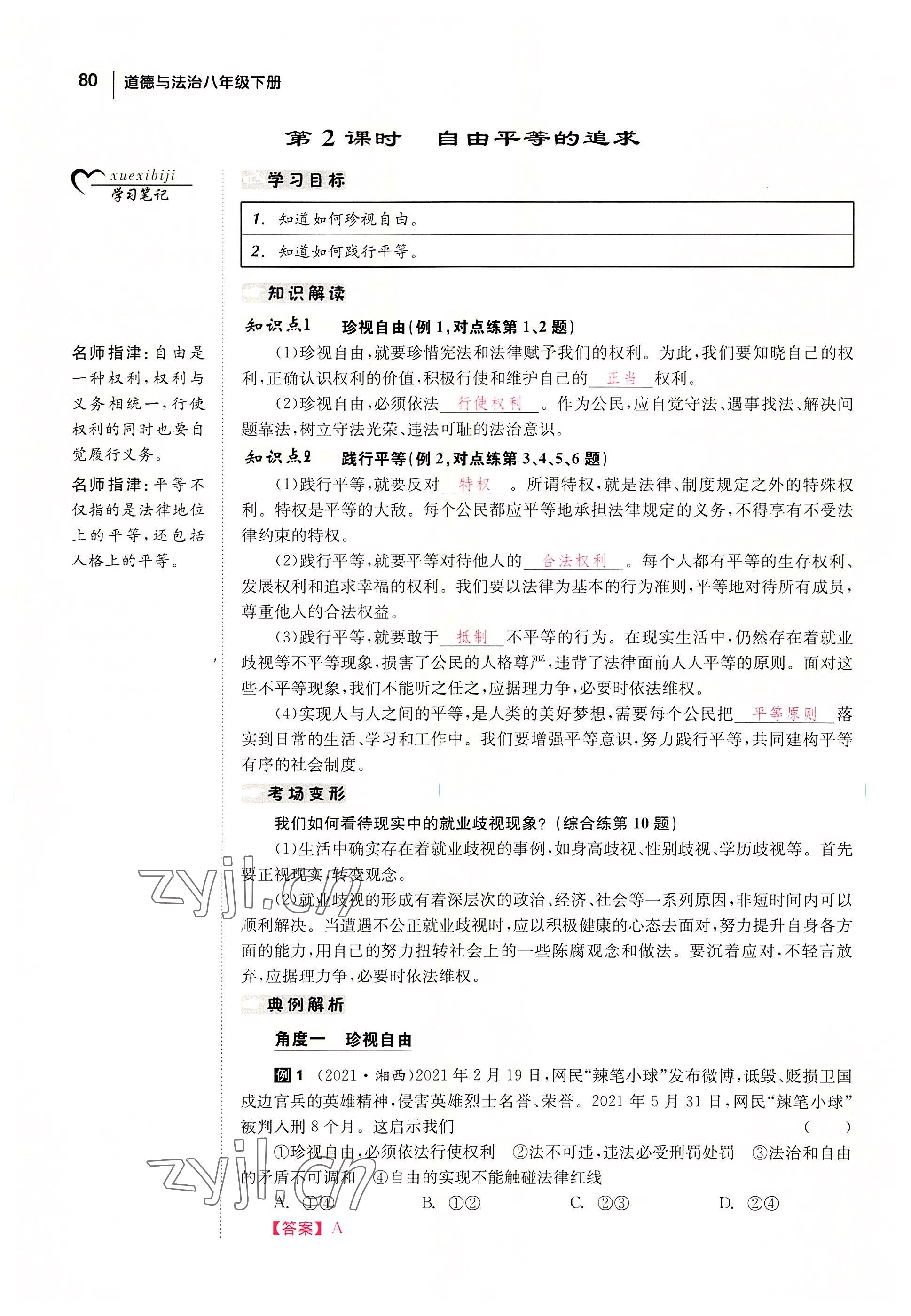 2022年全效学习学业评价方案八年级道德与法治下册人教版