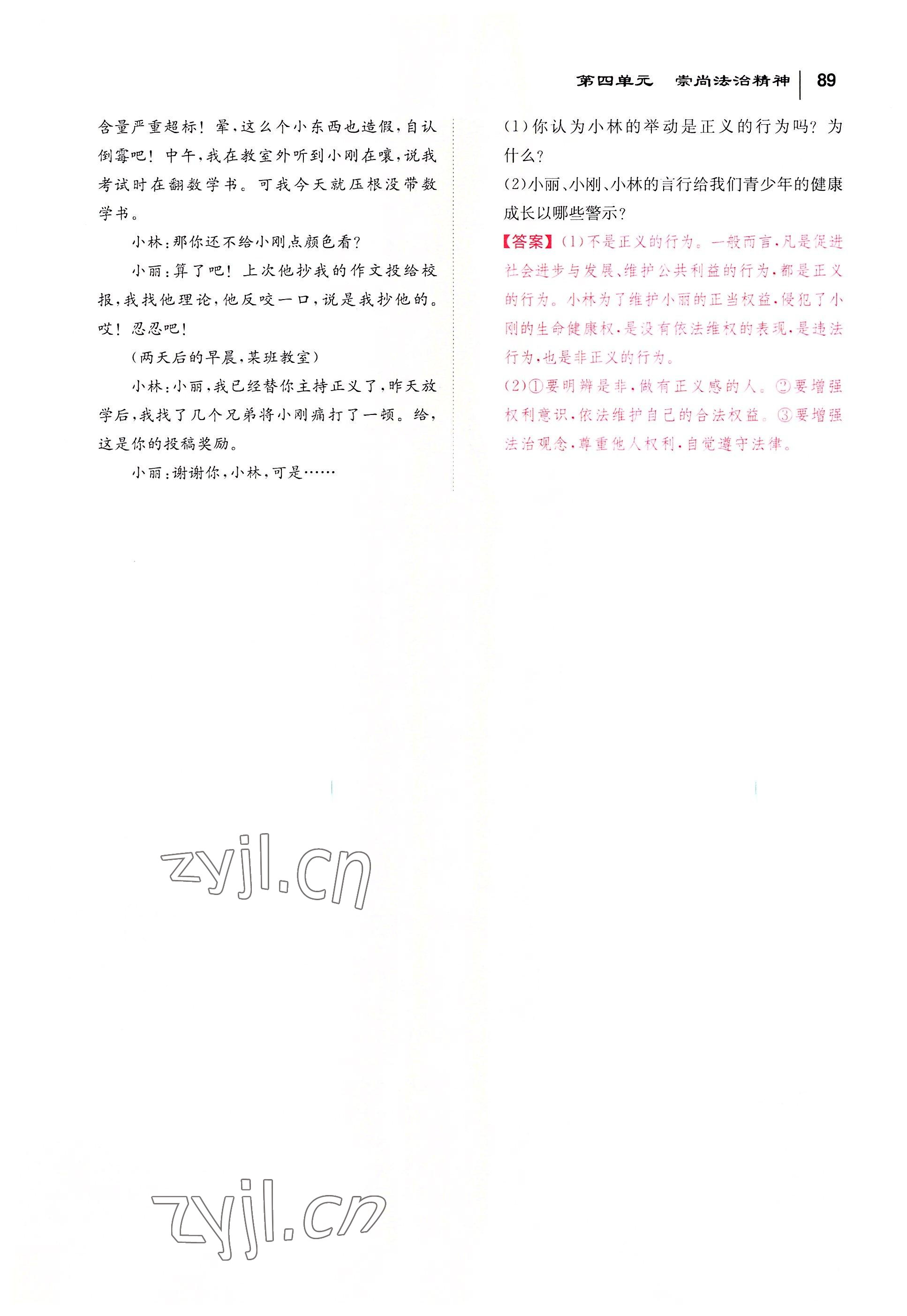 2022年全效学习学业评价方案八年级道德与法治下册人教版