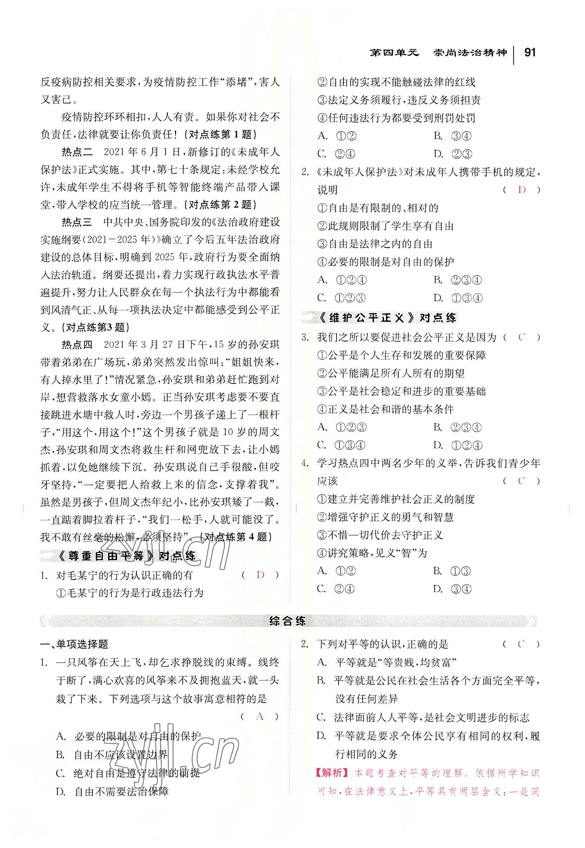 - 参考答案第91页