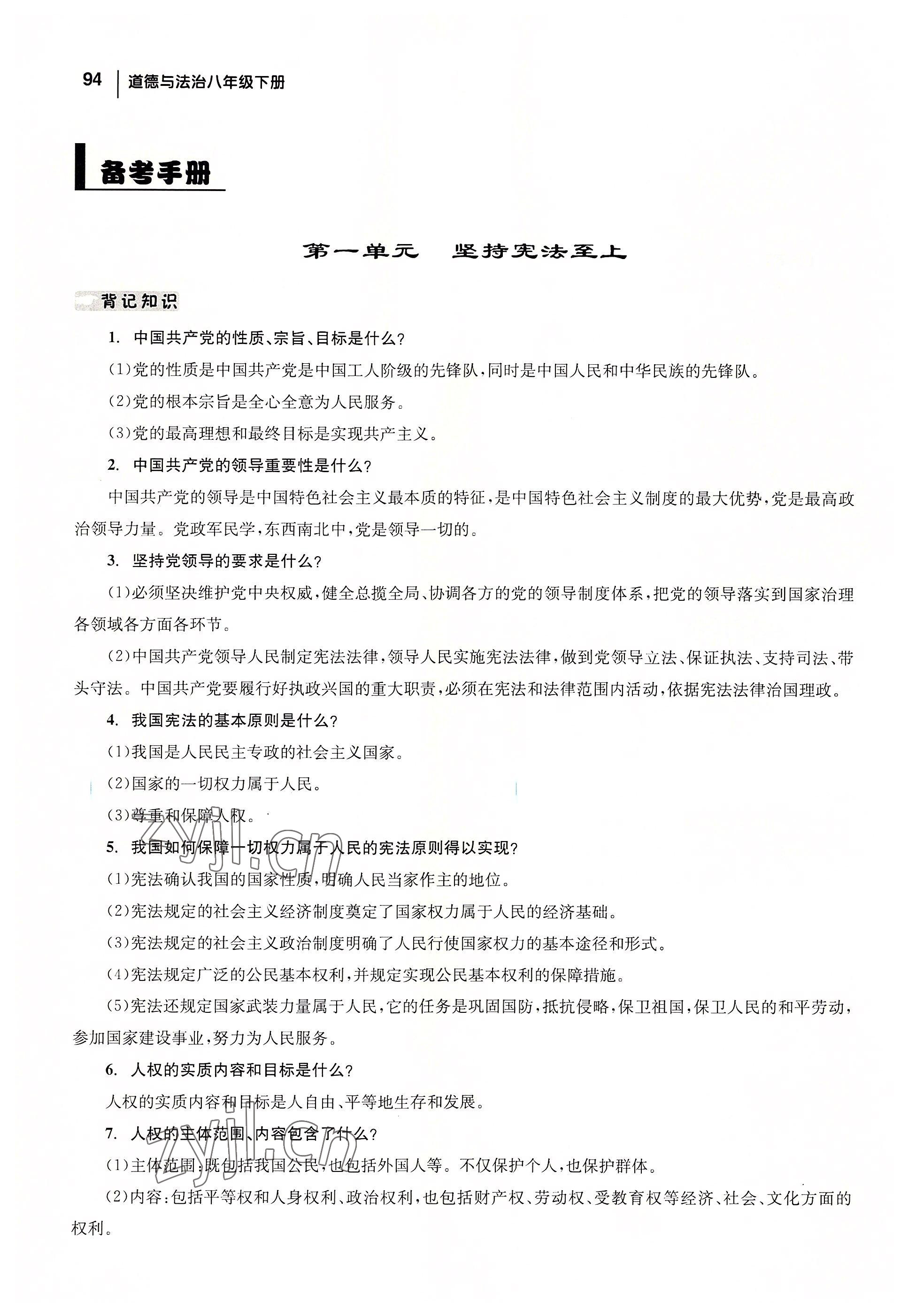 2022年全效学习学业评价方案八年级道德与法治下册人教版
