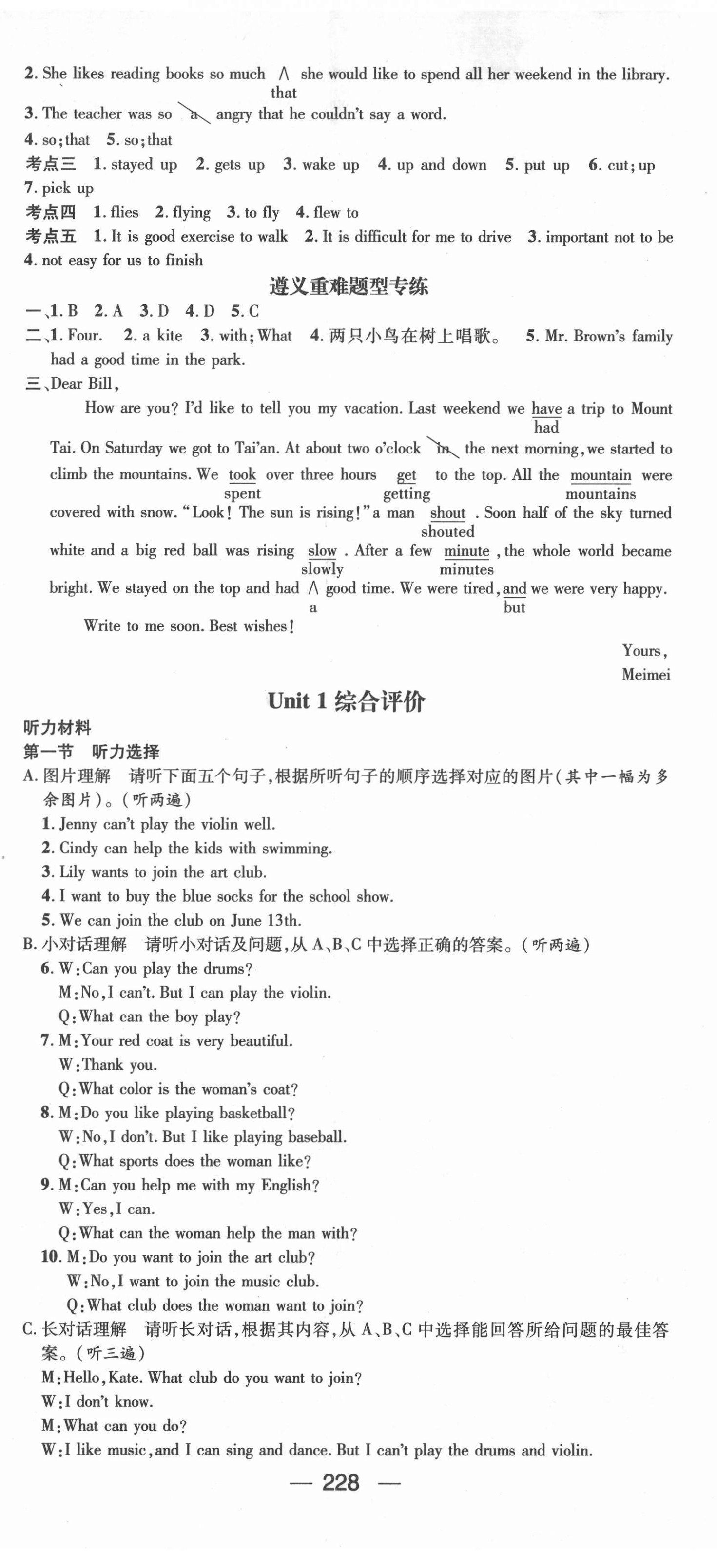 注:目前有些书本章节名称可能整理的还不是很完善,但都是按照顺序排列的,请同学们按照顺序仔细查找。练习册 2022年名师测控七年级英语下册人教版遵义专版 答案主要是用来给同学们做完题方便对答案用的,请勿直接抄袭。
