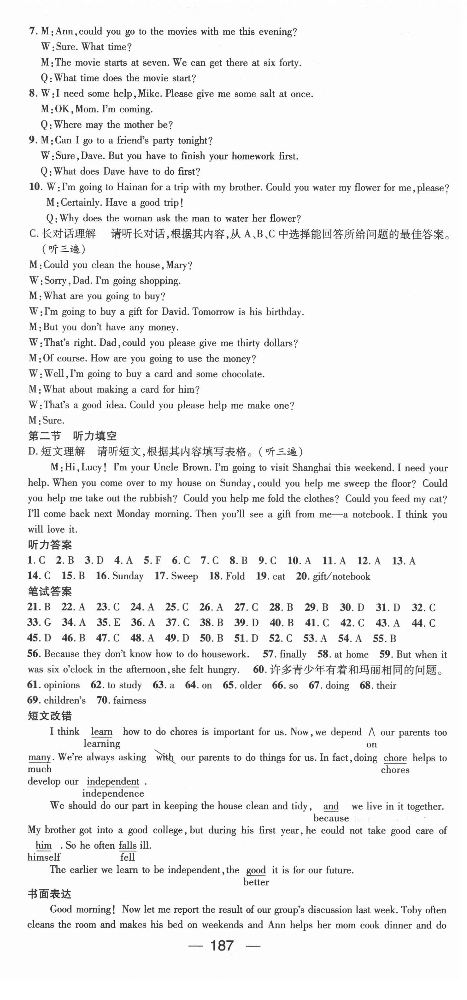 注:目前有些书本章节名称可能整理的还不是很完善,但都是按照顺序排列的,请同学们按照顺序仔细查找。练习册 2022年精英新课堂八年级英语下册人教版遵义专版 答案主要是用来给同学们做完题方便对答案用的,请勿直接抄袭。