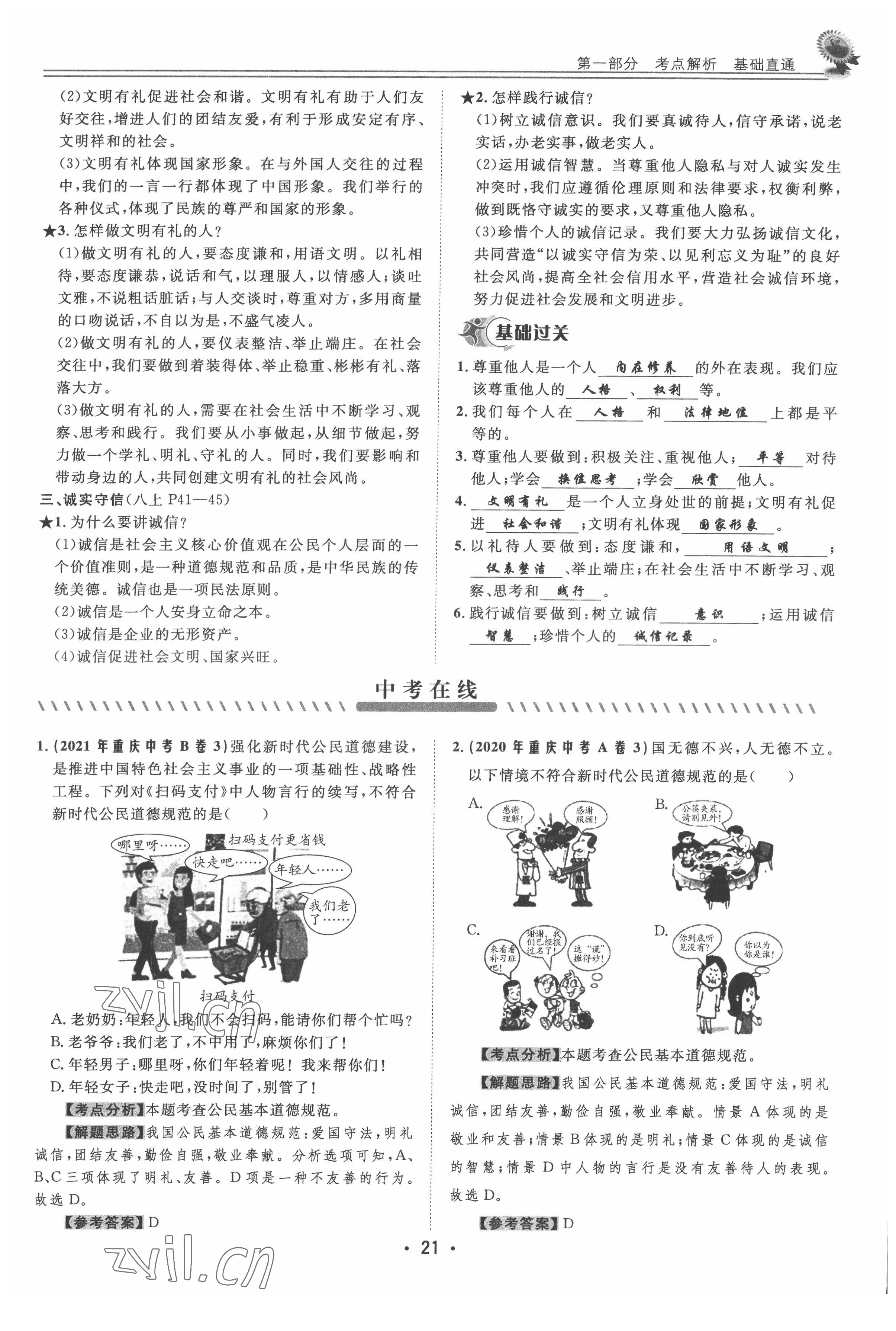 注:目前有些书本章节名称可能整理的还不是很完善,但都是按照顺序排列的,请同学们按照顺序仔细查找。练习册 2022年直通中考道德与法治重庆专版 答案主要是用来给同学们做完题方便对答案用的,请勿直接抄袭。